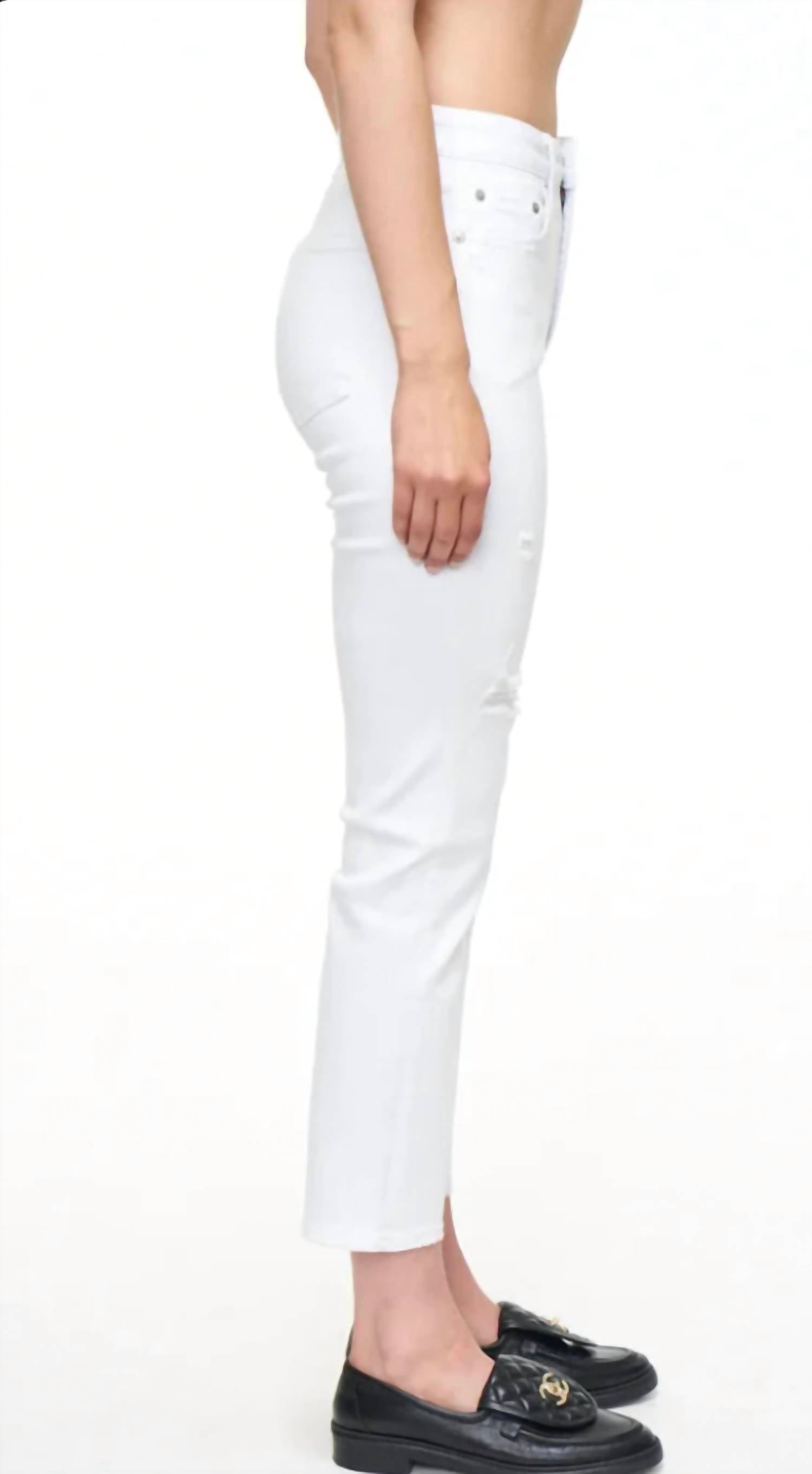 O jeans curto perfeito para as estações de transição. O Monroe é um short curto estilo cigarro, com cintura alta. Este modelo apresenta lavagem Seashell Distressed superelástica e um leve desgaste nos joelhos. • Altura: 10" • Costura interna: 26,5" • Abertura das pernas: 13,5" • Fiel ao tamanho • A modelo tem 1,75 m e veste tamanho 26 67% algodão / 22% poliéster reciclado / 9% rayon / 2% elastano