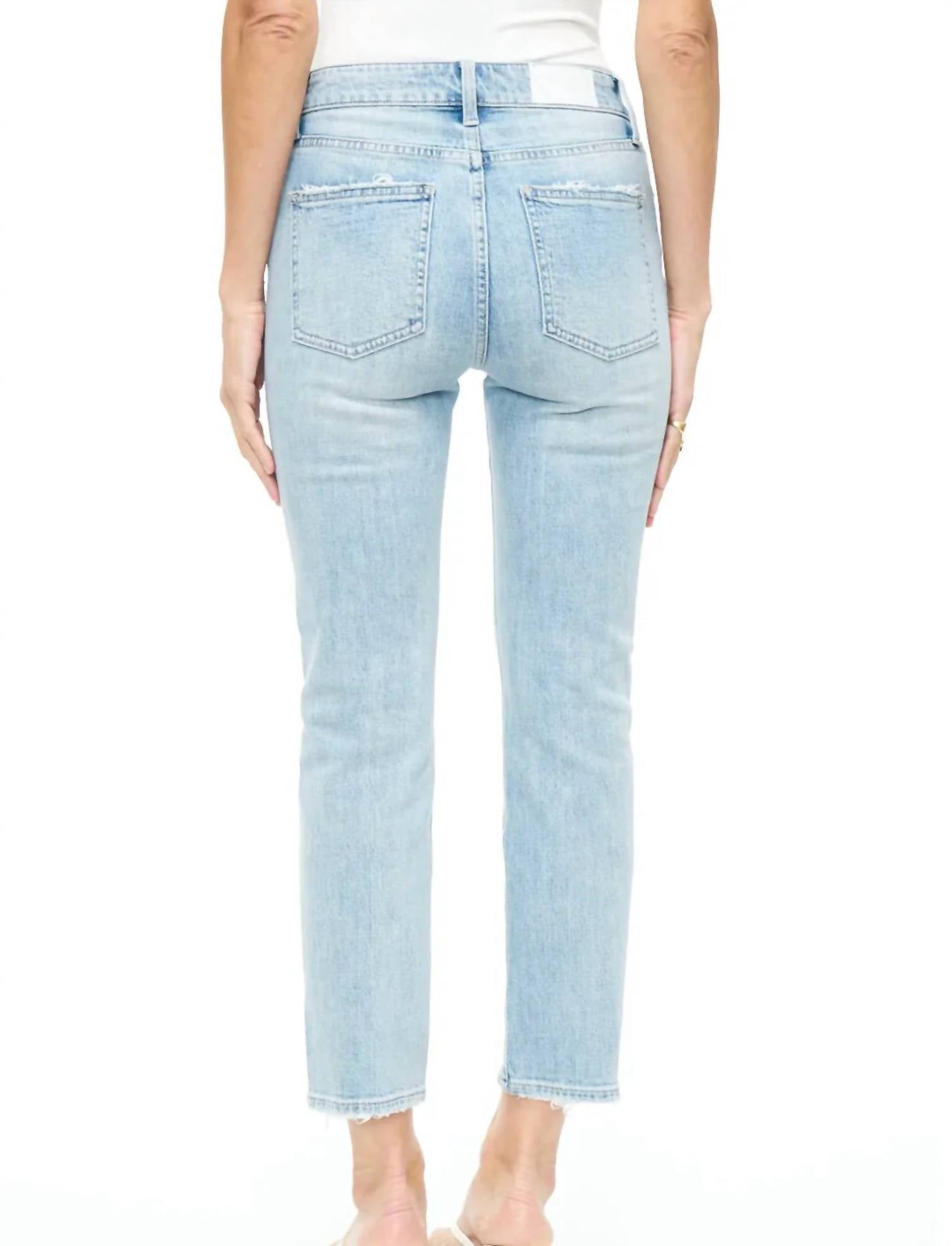 Descubra a Calça Jeans Crop Cigarette Monroe de Cintura Alta da PISTOLA, a personificação chique de conforto e estilo na cor LENORA. Esta calça jeans de cintura alta tem corte slim, perna skinny e comprimento logo acima do tornozelo, com um sutil detalhe desgastado e leve desfiado na barra. Confeccionada em uma mistura de algodão com 72% algodão, 27% rayon e 1% elastano, proporciona um ajuste elástico e confortável. Fechamento: Fechamento por botão. Cuidados: Lavar à máquina.