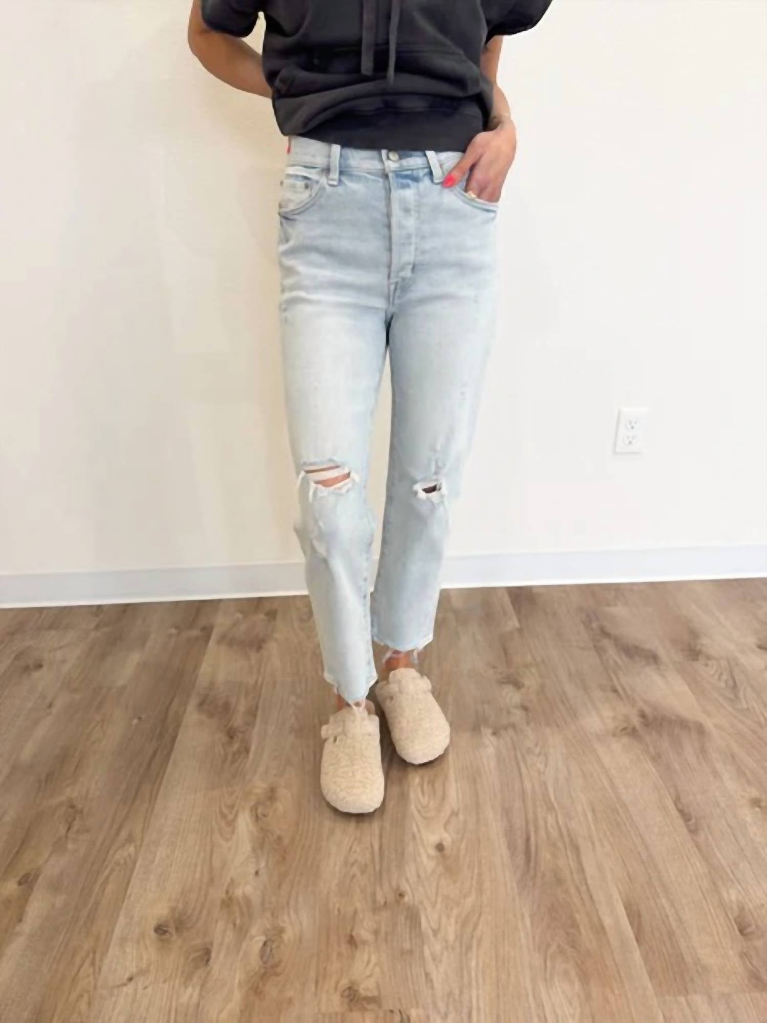 Eleve o seu estilo com a Calça Jeans Penelope Straight Crop Vintage da PISTOLA, confeccionada em jeans liso clássico para um visual atemporal. Esta calça jeans com lavagem clara oferece cintura alta e corte reto, apresentando um caimento estruturado e confortável com elasticidade na medida certa. Com fecho de botão e bolsos funcionais, esta calça jeans é perfeita para complementar seu guarda-roupa de primavera sem esforço. Ideal para passeios casuais, ela segue a tendência Y2K, tornando-a adequada para ocasiões como a volta às aulas.