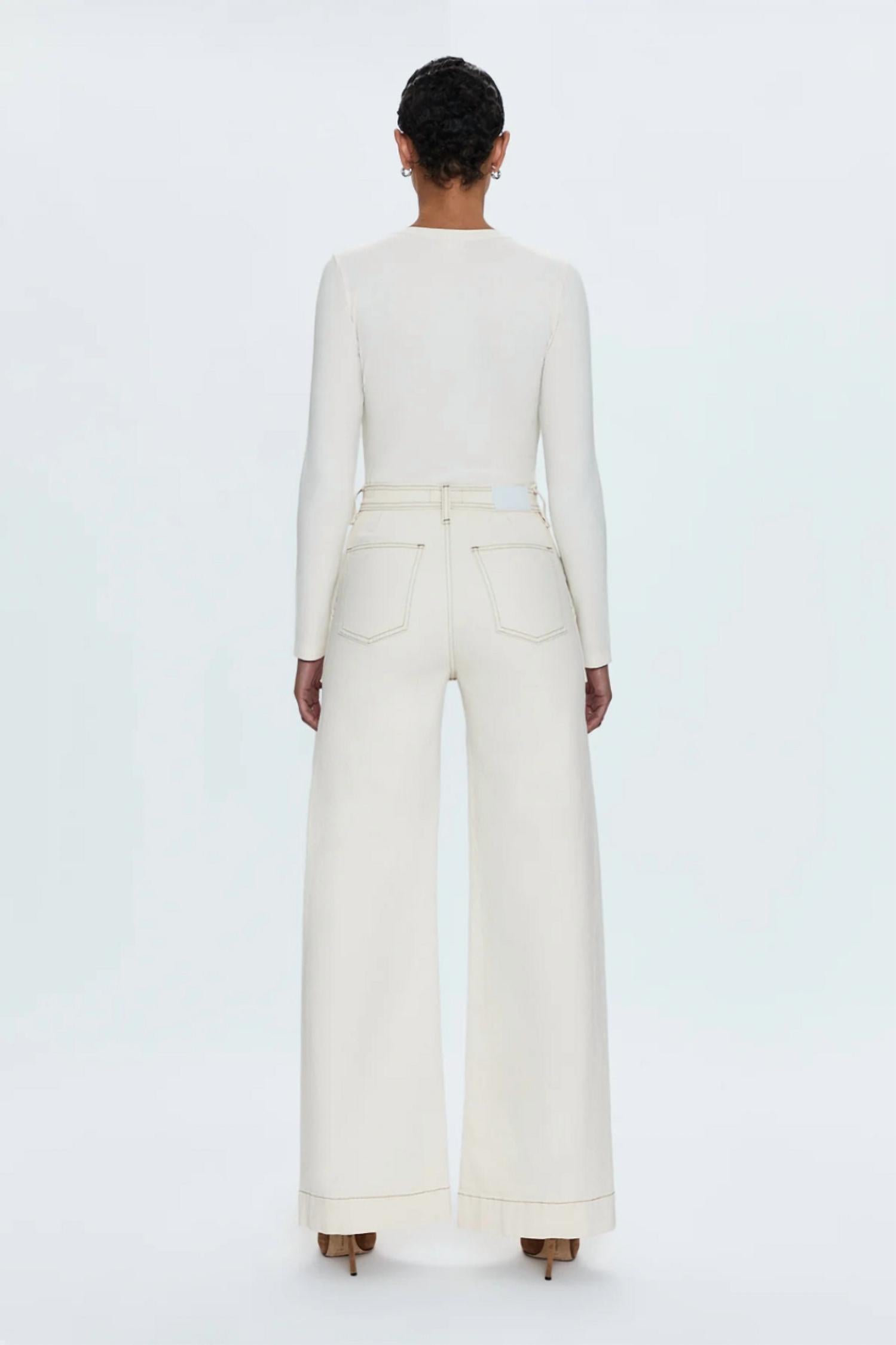 Tão fofos quanto confortáveis. Abrace a elegância e a utilidade com a Calça Jeans Penny Utility da PISTOLA, agora disponível em um sofisticado tom cru. Esta calça jeans feminina de cintura alta tem um caimento relaxado e pernas largas que valorizam o corpo, além de bolsos práticos. Confeccionada em uma mistura de algodão durável, 99% algodão e 1% elastano, ela foi desenvolvida para conforto e estilo. O fechamento é feito com um botão e seu padrão sólido a torna ideal para o streetwear de primavera ou ocasiões de férias.