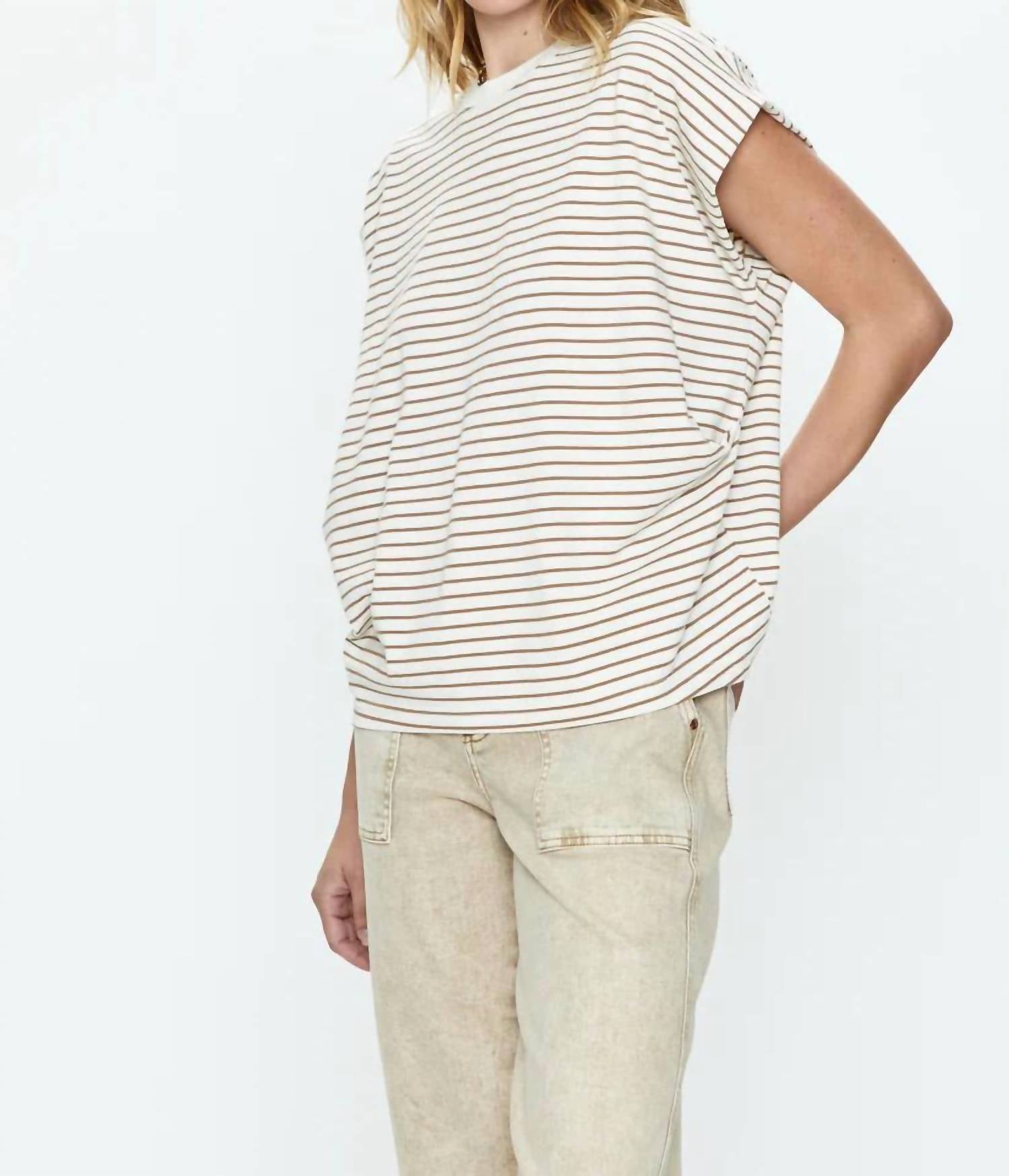 A camiseta de manga curta que você vai querer em todas as cores. Apresentamos a camiseta Pistola Trina Muscle, um item essencial para o seu guarda-roupa casual na marcante Sable Stripe. Esta camiseta apresenta mangas curtas, oferecendo uma releitura do visual tradicional da camiseta muscle, com um corte largo e largo. Confeccionada em 100% algodão, ela promete conforto leve para o dia a dia. Com fecho pull-on e lavagem a seco recomendada, esta peça importada é perfeita para o verão, evocando um apelo nostálgico da moda dos anos 90.