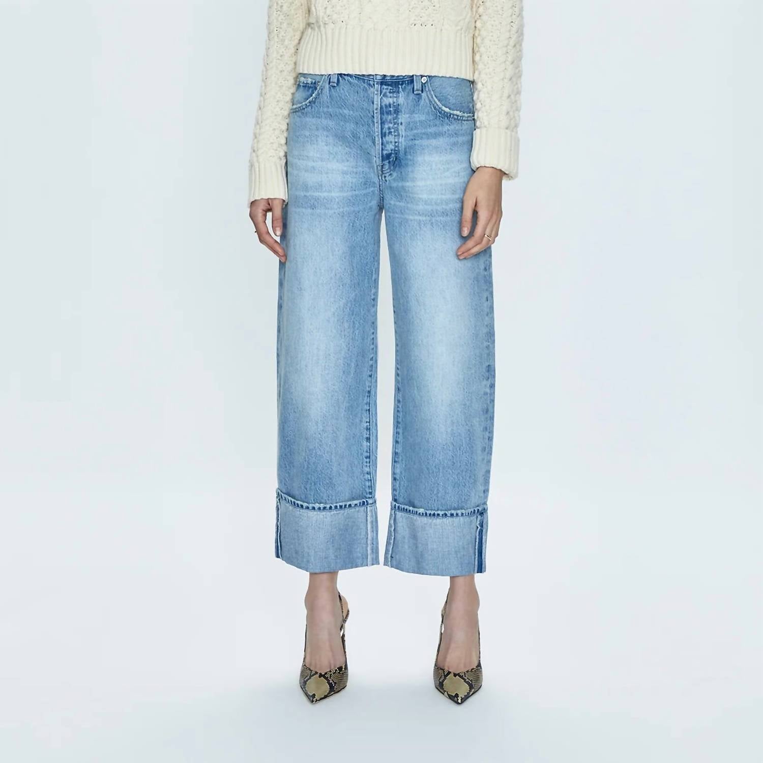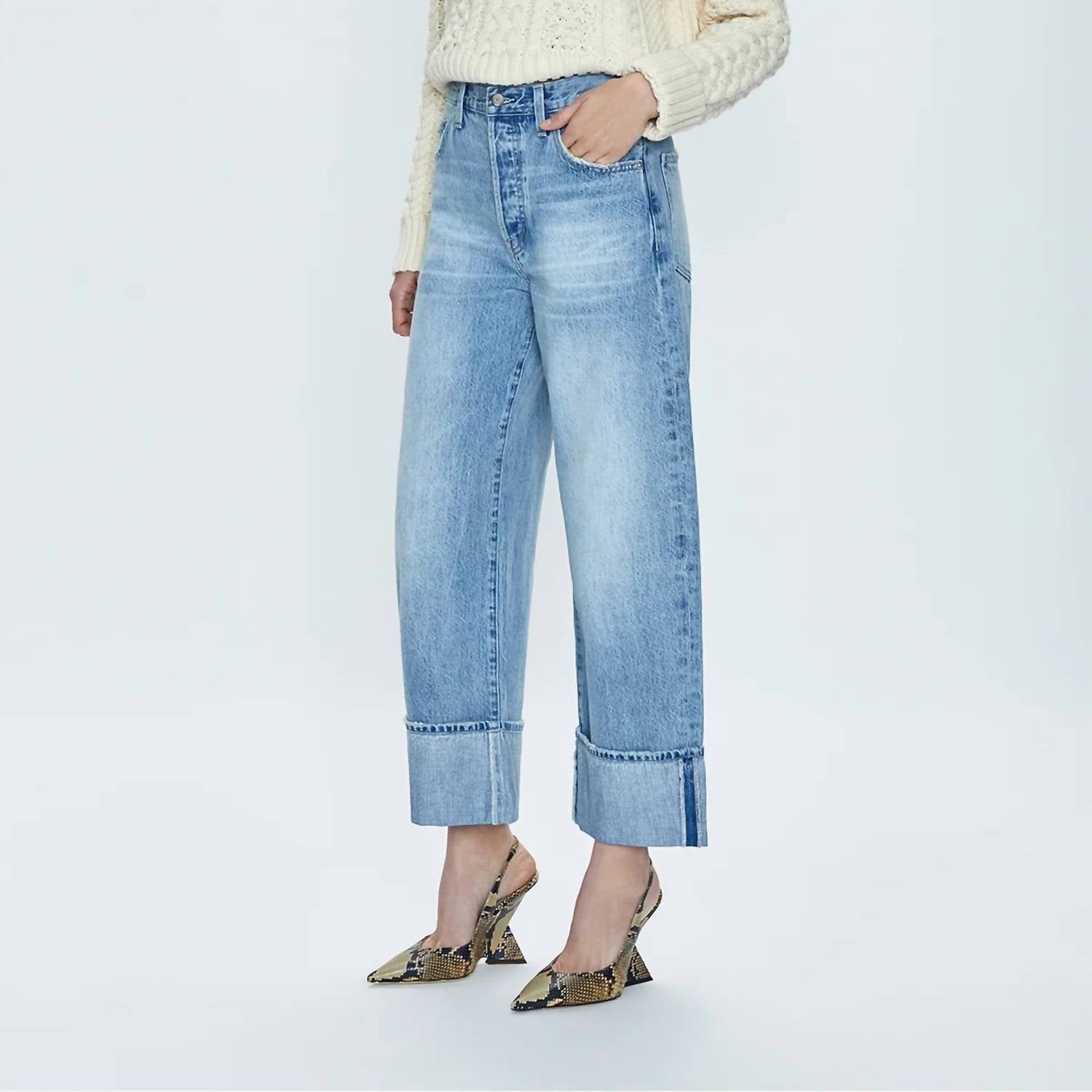 Eleve seu guarda-roupa jeans com a Calça Jeans Ryder High Rise Cuffed Straight da PISTOLA, com cintura alta e caimento confortável. Confeccionada com maestria em algodão liso, esta calça apresenta uma lavagem Essex azul-claro para um visual atemporal. O corte reto é complementado por uma bainha oversized com punhos, realçando o estilo vintage. Fechamento: Botão. Com 30 cm de altura e 68 cm de costura interna, esta calça oferece uma combinação perfeita de sofisticação e charme descontraído.