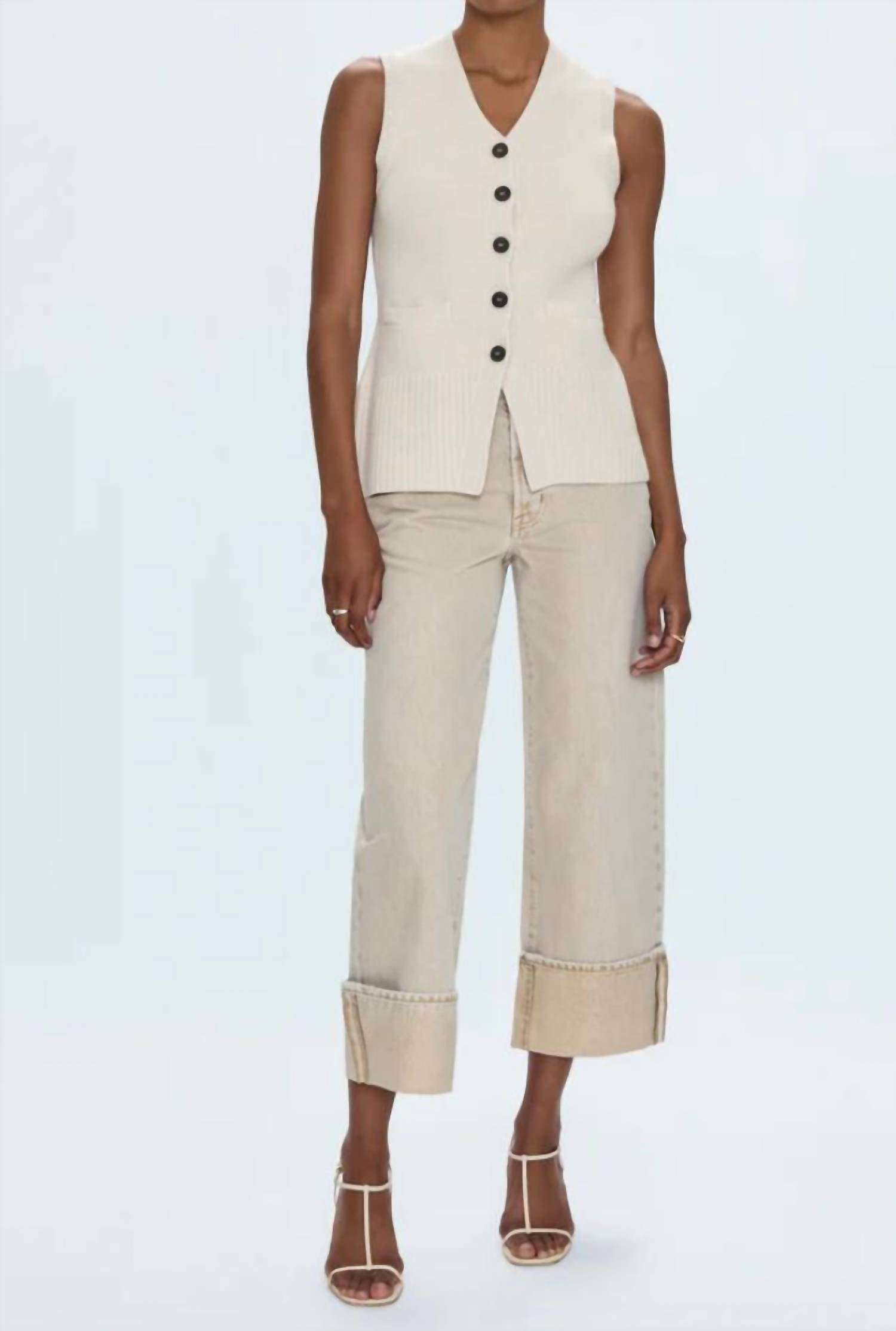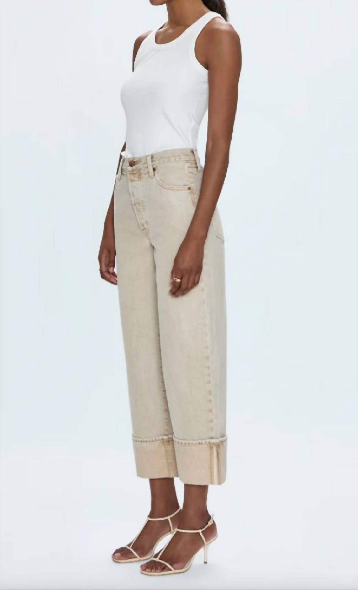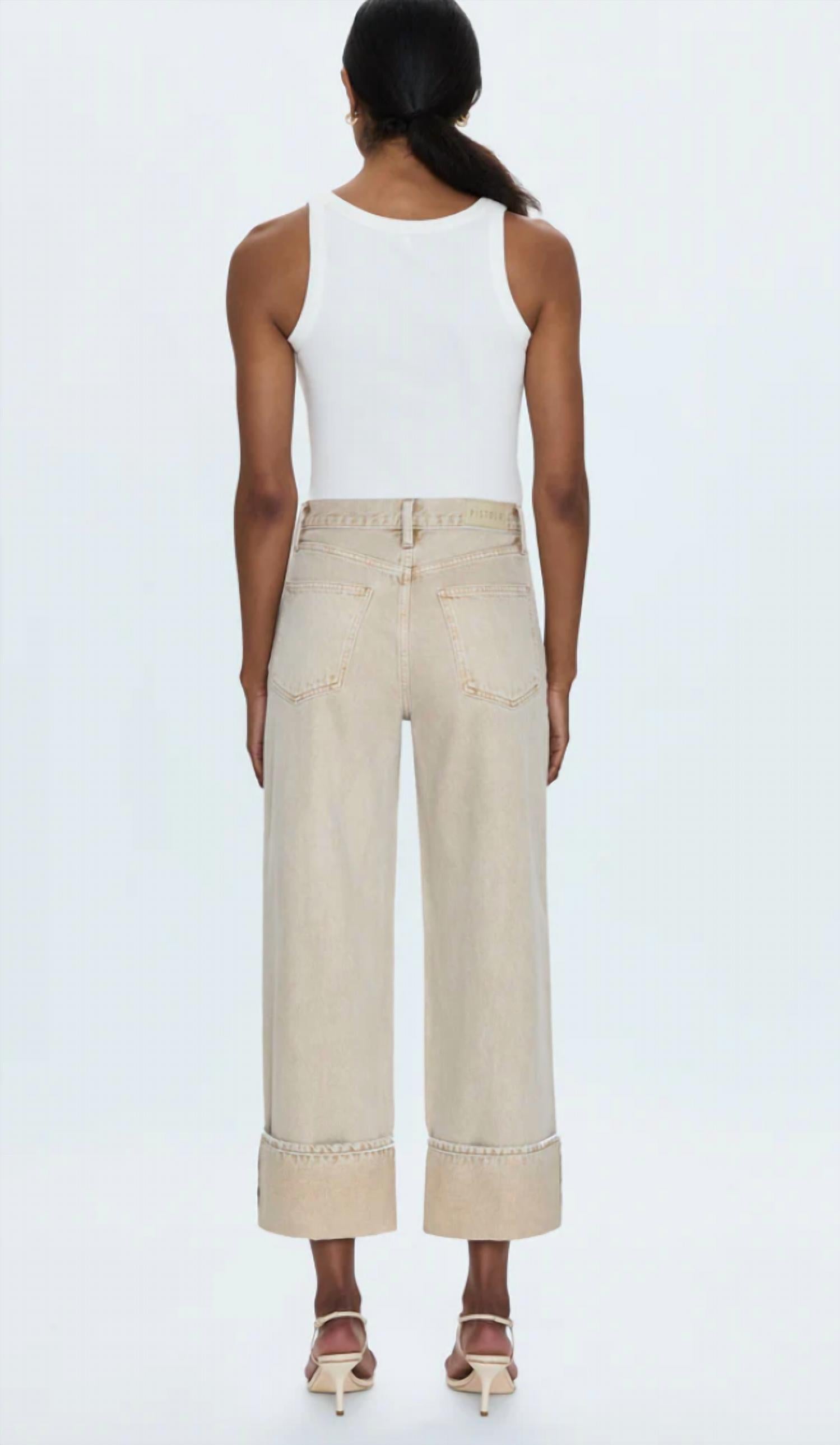 Apresentamos a calça jeans Ryder High Rise Cuffed Straight Leg da PISTOLA, uma adição elegante à sua coleção de jeans. Esta calça jeans apresenta cintura alta, caimento solto e bainha larga ajustável com punho no tornozelo para uma silhueta contemporânea. Confeccionada em cor sólida de aveia, 100% algodão, ela promete uma sensação rígida, porém leve, que mantém sua estrutura. Com 30 cm de altura, 68 cm de costura interna e 48 cm de abertura na perna, esta calça jeans oferece estilo sem abrir mão da funcionalidade. Fechamento: Botão.