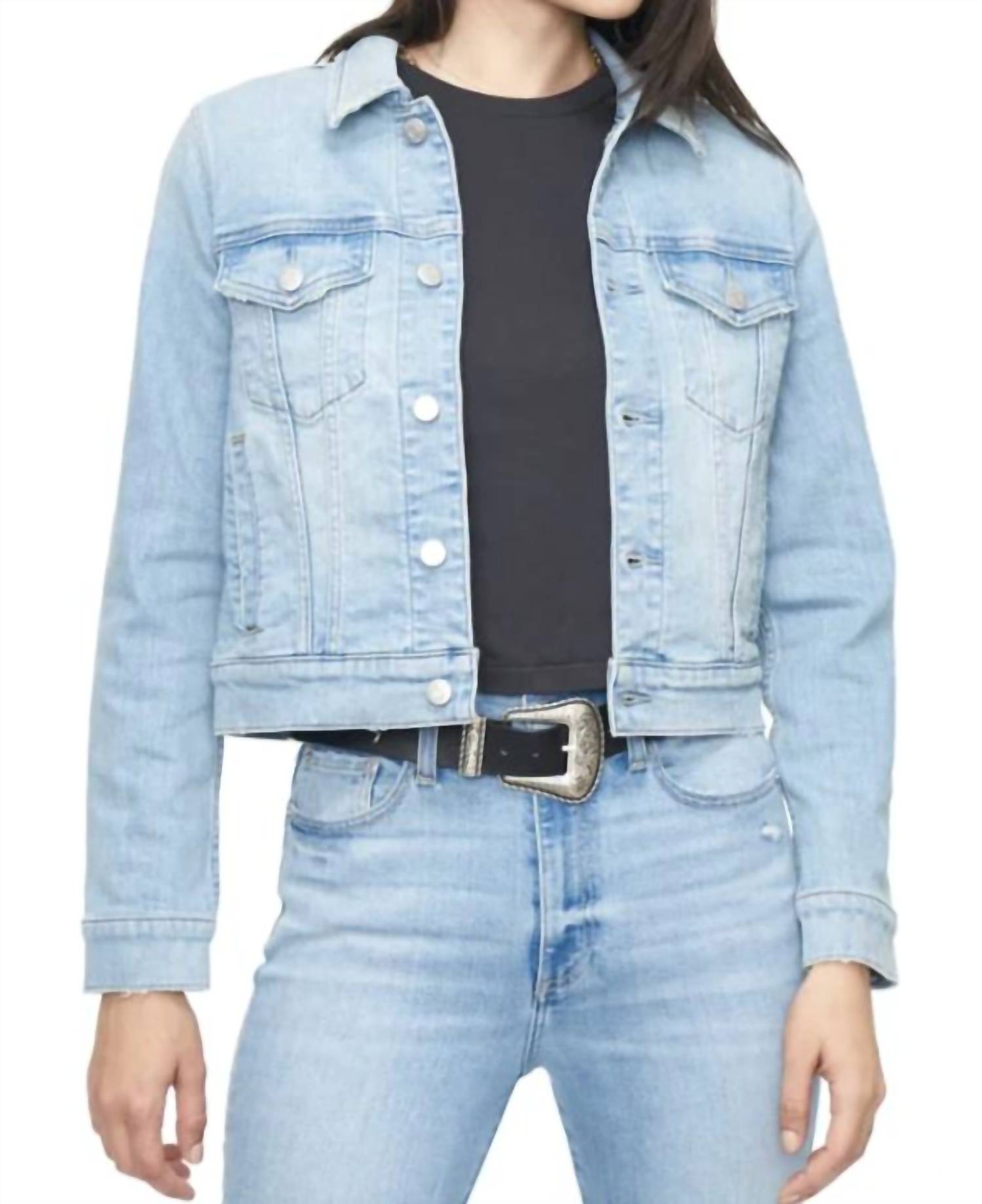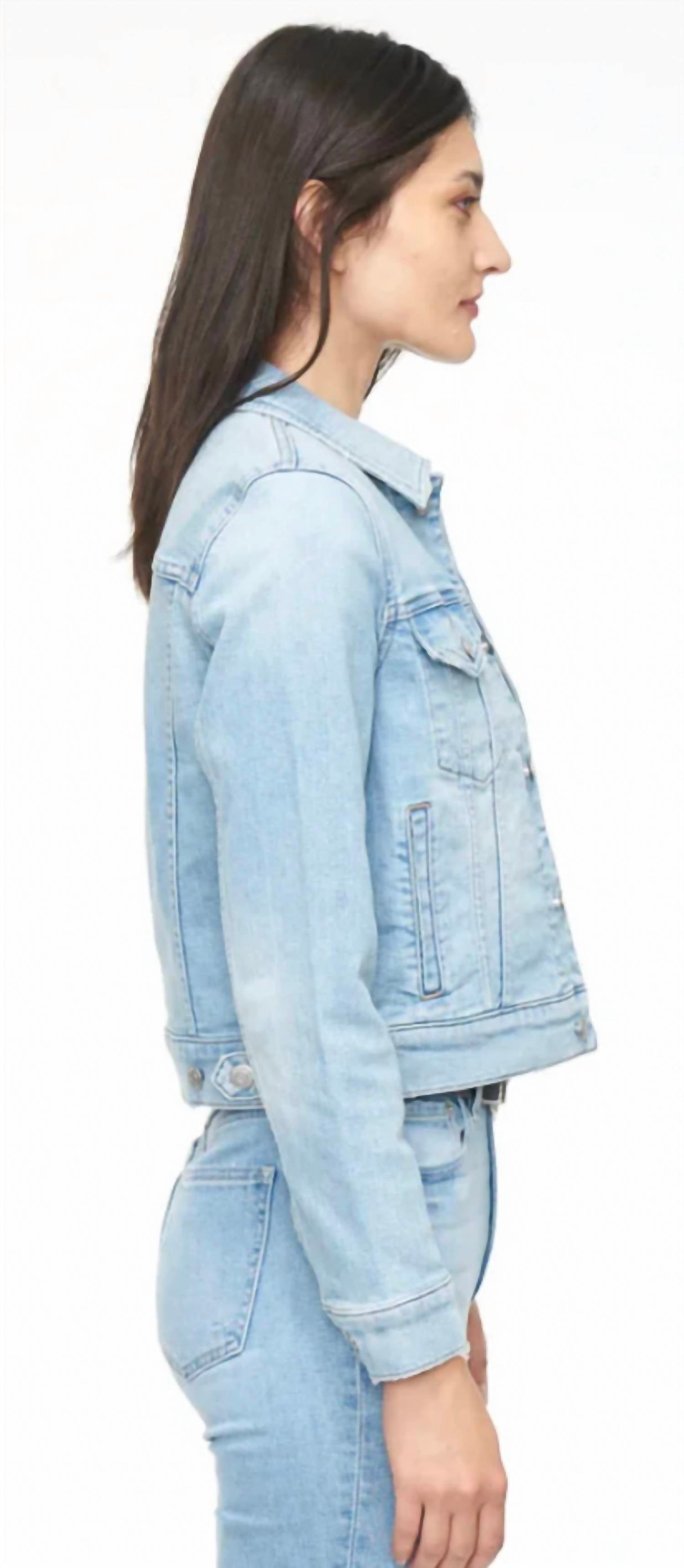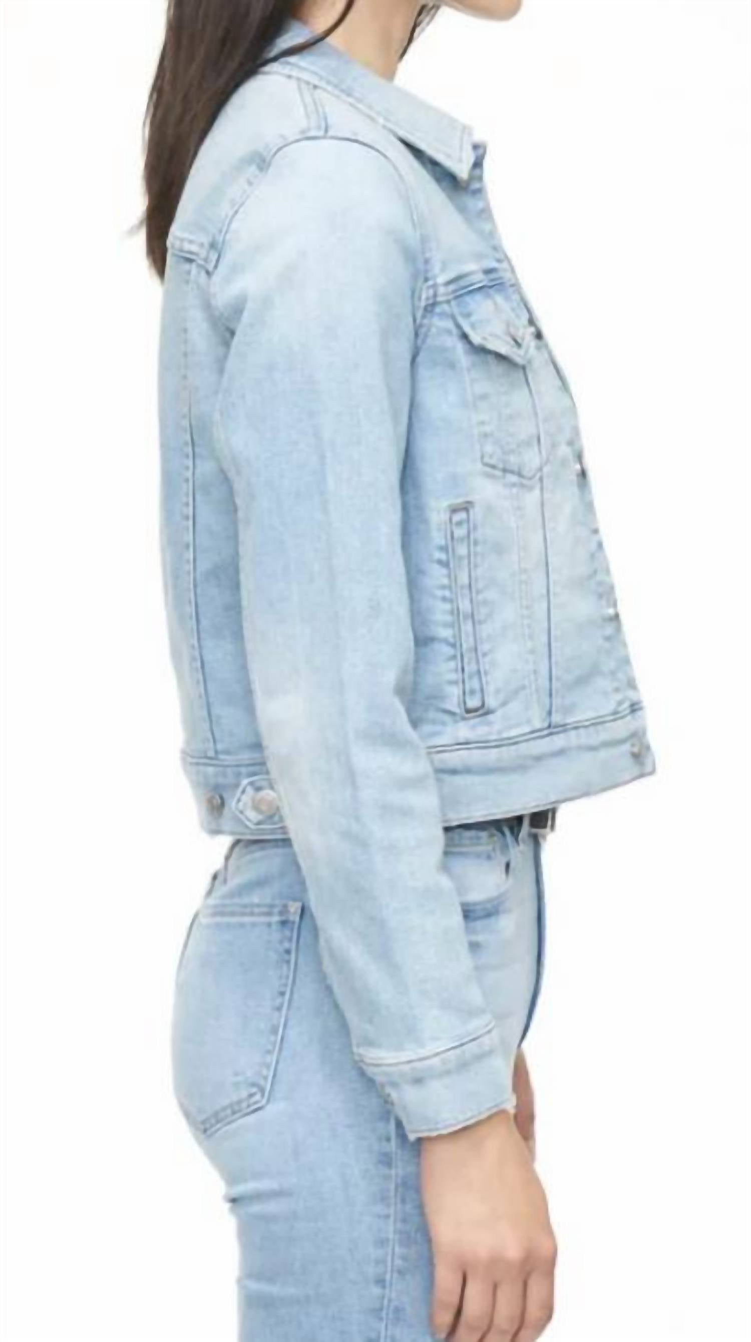 Clássico, descolado e combina com quase qualquer look. A Saba é uma jaqueta jeans cropped justa com bolsos práticos. Escolha um tamanho maior para um visual mais descontraído e oversized. Este modelo vem em um jeans limpo e com lavagem clara. 94% algodão / 5% poliéster / 1% elastano • Comprimento: 54 cm • Tórax: 97 cm • Tamanho real • A modelo tem 1,75 m e veste tamanho P