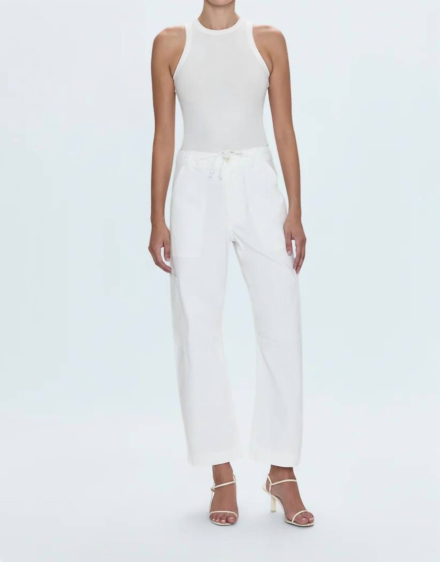 Adote uma estética descontraída e refinada com a Calça Utilitária Curvada Sabrina. Esta calça é meticulosamente desenhada com um formato sutilmente arqueado nas pernas, criando uma silhueta única e moderna que a diferencia. Confeccionada em sarja durável e sem elasticidade, oferece um toque estruturado que mantém o formato ao longo do dia. O cós invisível permite personalizar o ajuste para o máximo conforto, enquanto os bolsos utilitários estrategicamente posicionados proporcionam estilo e funcionalidade. Perfeita para os seus dias de folga, esta calça combina, sem esforço, praticidade com um toque chique e contemporâneo.