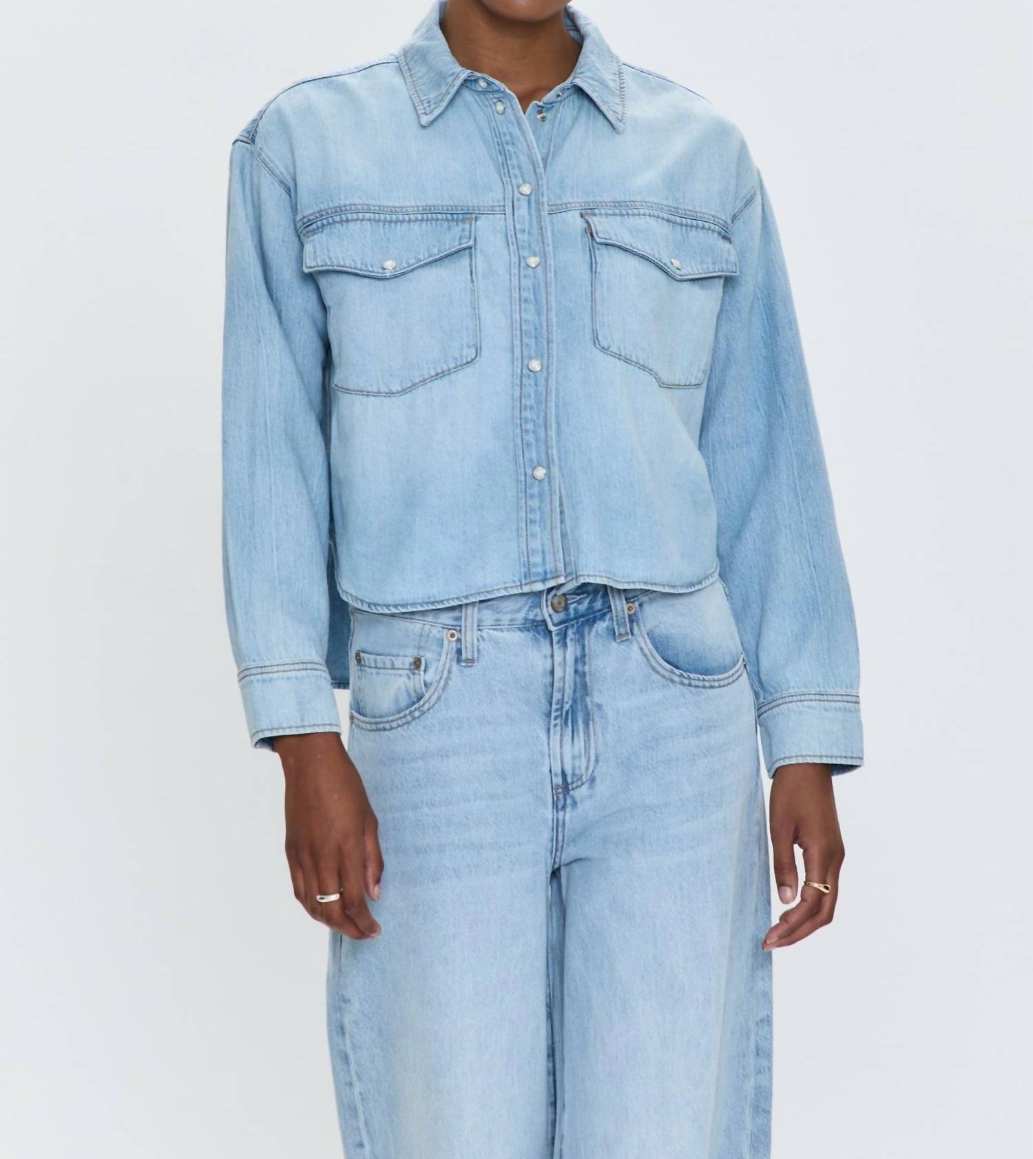 Conheça a Camisa de Trabalho de Manga Longa Sadie da PISTOLA, habilmente confeccionada para o trabalho e o lazer, com mangas longas e gola estruturada. Esta camisa, 100% algodão, oferece um caimento perfeito com práticos bolsos frontais no peito e mede 58 cm de comprimento para um estilo versátil, seja para dentro ou para fora. De origem importada, possui fecho de botão para um visual clássico. Os cuidados com esta peça essencial são simples, com instruções de lavagem à máquina.