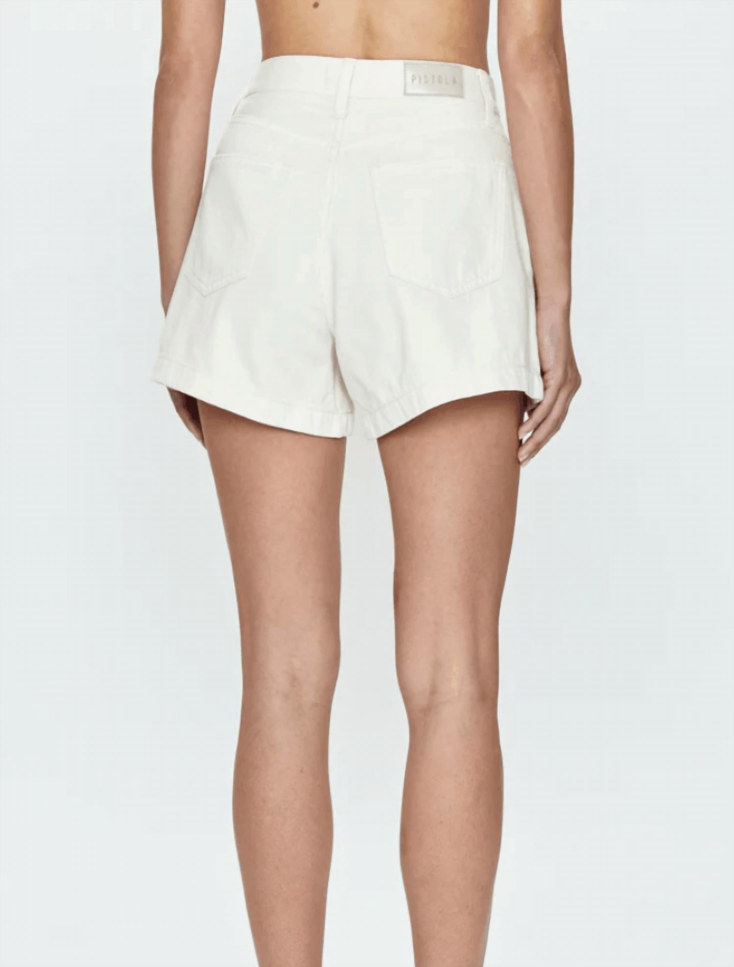 A cintura alta veio para ficar e nós amamos especialmente esse estilo curto. Apresentamos o Short Saige High Rise da PISTOLA, uma adição estilosa ao seu guarda-roupa de primavera em um tom quente de casca de ovo. Este shorts apresenta uma cintura alta elegante com um corte em A relaxado em comprimento médio curto, mantendo o estilo sem esforço. Feito com 77% algodão e 23% rayon, este jeans rígido e sem elasticidade mantém seu formato perfeitamente. Fechamento: Fechamento por botão. Importado para um trabalho artesanal de qualidade.