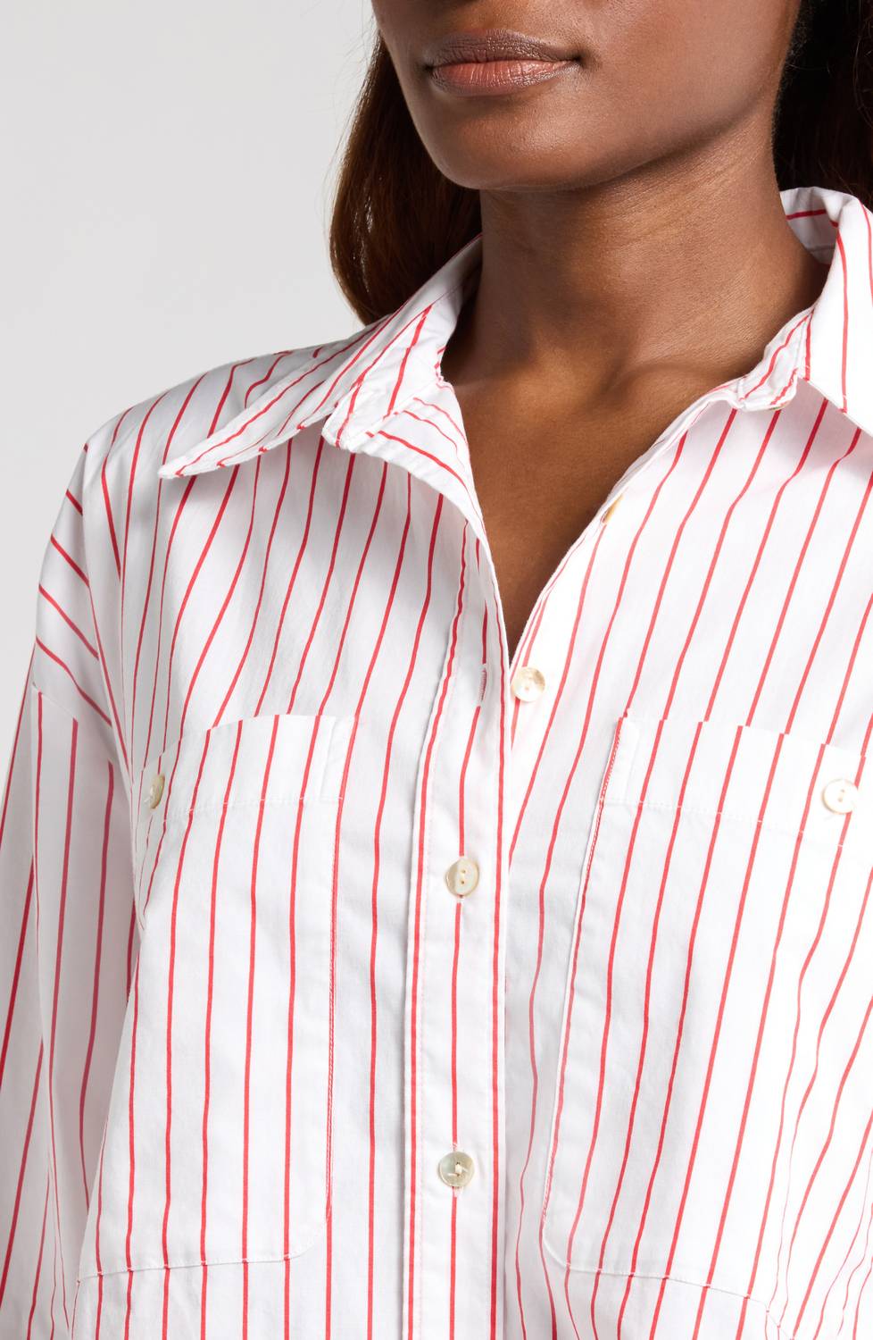 Apresentamos a Camisa Samantha Oversized com Botões da PISTOLA, em uma marcante Listra Rubi. Esta camisa feminina possui mangas compridas com punhos abotoados, confeccionada em uma mistura de 97% algodão e 3% elastano para conforto e estilo. Seu corte longo, com 73 cm de comprimento para o tamanho médio, é realçado por uma gola ampla, bolsos frontais com botões no peito e bainha com barra alta/baixa. Projetada com fecho frontal por botões, é perfeita para lavagem na máquina e secagem em tambor, trazendo praticidade aos seus itens essenciais do guarda-roupa. Importada para garantir a qualidade.