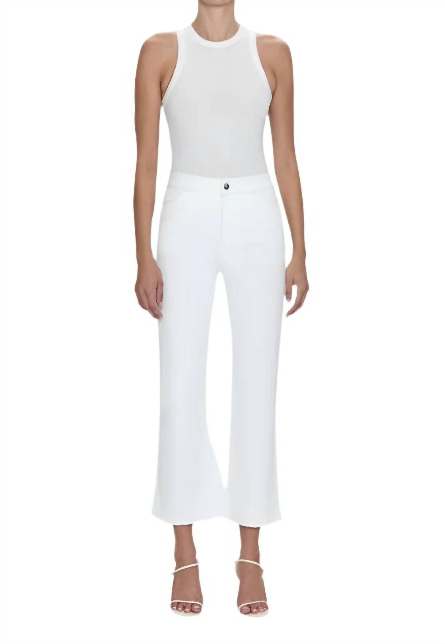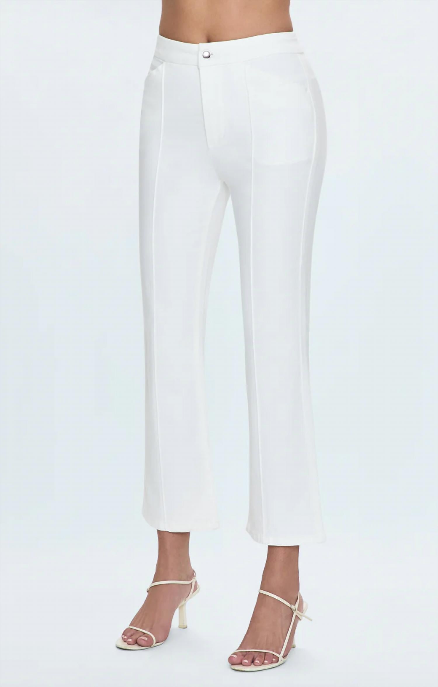 Calças levemente flare estão na moda agora, e estas não são exceção. Combine-as com sua camiseta favorita para um look mais casual ou com sua blusa de botões favorita para uma saída à noite. Descubra a Calça Flare Ponte Simone Kick da PISTOLA, confeccionada em um elegante tom branco, ideal para uso diurno e noturno. Esta calça apresenta cintura média com 26 cm de comprimento e 68 cm de costura interna, incorporando uma perna bootcut elegante com um corte slim. A mistura de tecidos é 98% algodão e 2% elastano, projetada para um alongamento confortável, e inclui bolsos frontais inclinados e bolsos traseiros embutidos. Aproveite o fechamento fácil por cadarço e os cuidados com a lavagem à máquina e a conveniência da secagem em tambor, tornando-a a companheira de viagem perfeita para as aventuras de verão.