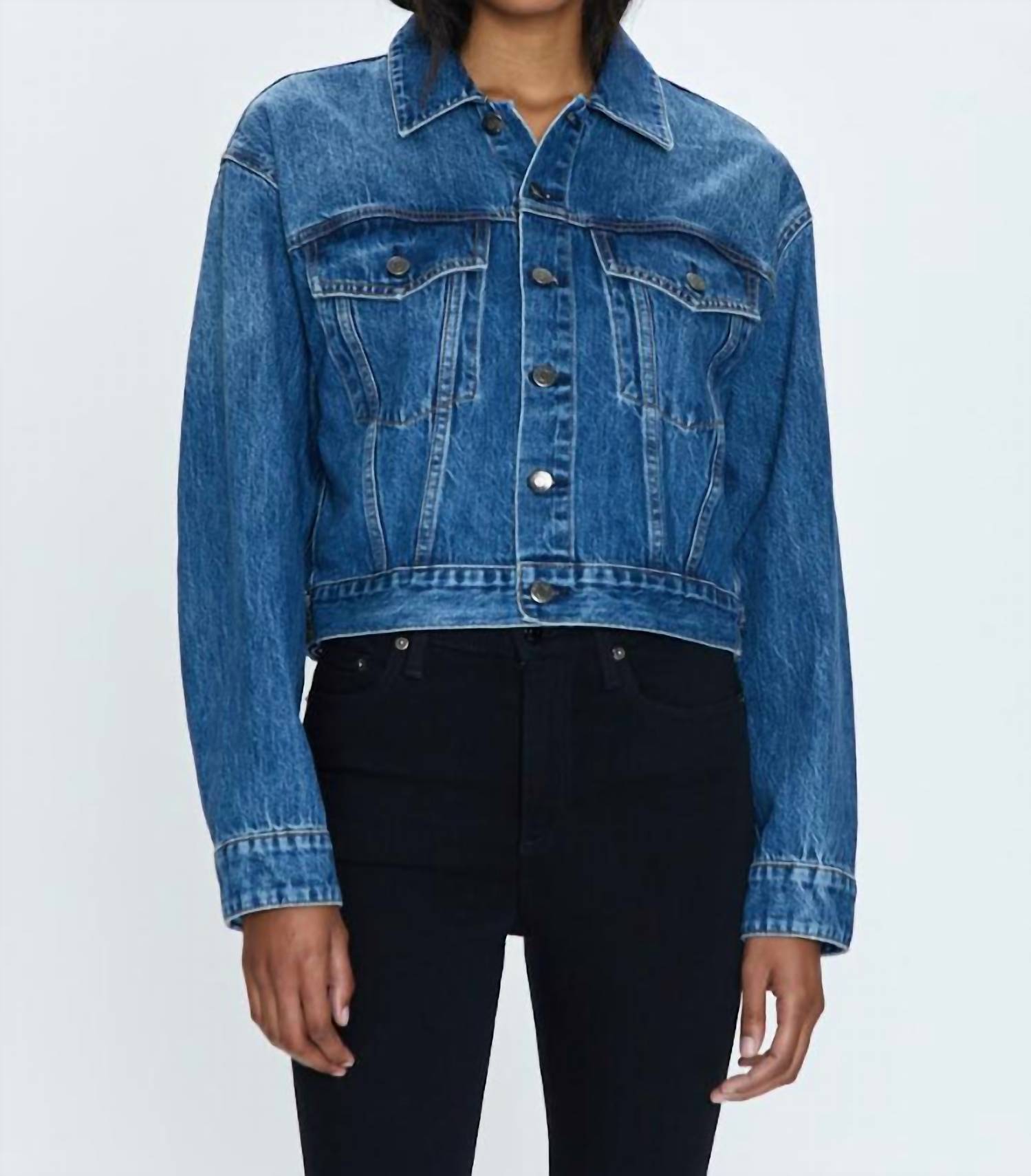 Esta jaqueta utilitária é a combinação perfeita de estilo e feminilidade. Esta jaqueta curta Trucker possui fecho de botão, gola clássica e bolsos frontais, feita de 100% algodão para um visual estiloso e funcional.