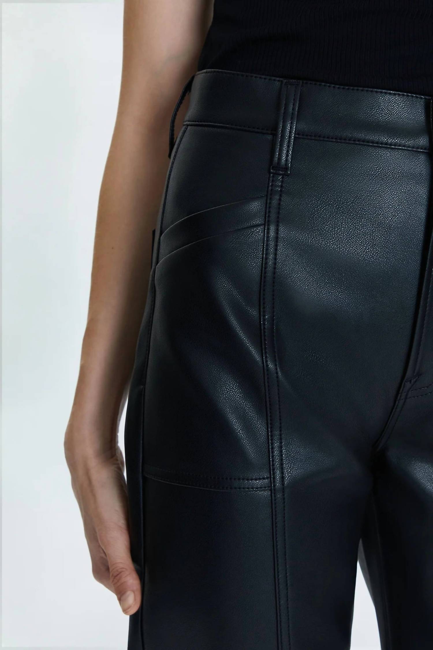 Experimente a Calça Taylor High Rise Arched Leg da PISTOLA, uma adição chique a qualquer guarda-roupa em um sofisticado tom preto ardósia. Esta calça feminina possui cós alto e comprimento até o tornozelo, com uma elegante silhueta arqueada e barra reta. Confeccionada em 100% poliuretano, apresenta um design elegante com costura frontal e um confortável fecho de botão. Com costura interna de 73 cm e abertura de perna de 42 cm, esta calça é fácil de cuidar, seguindo as instruções de lavagem à máquina. A modelo tem 1,75 m e veste tamanho 66.