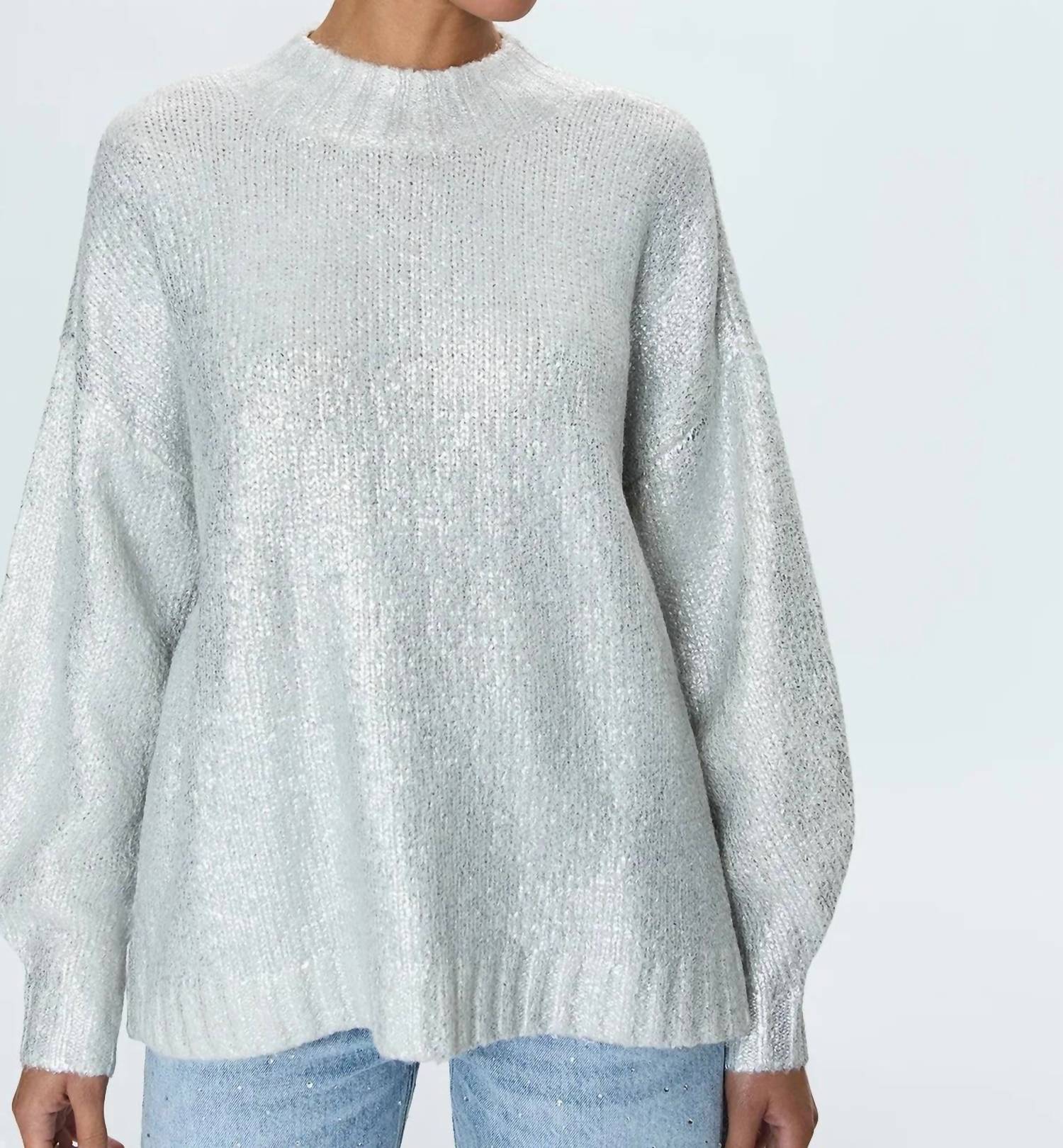 Eleve seu guarda-roupa de inverno com o suéter feminino Carlen Mock Neck da PISTOLA, com mangas longas oversized para um caimento relaxado e moderno. Este pulôver é cuidadosamente confeccionado em uma mistura de lã aconchegante, oferecendo um toque macio e luxuoso com uma elegante gola falsa. Adornado no tom prateado iridescente Snow Disco, ele traz um brilho festivo a qualquer conjunto. Desenhado na categoria de padrões texturizados, esta peça é a sua escolha para um conforto chique.
