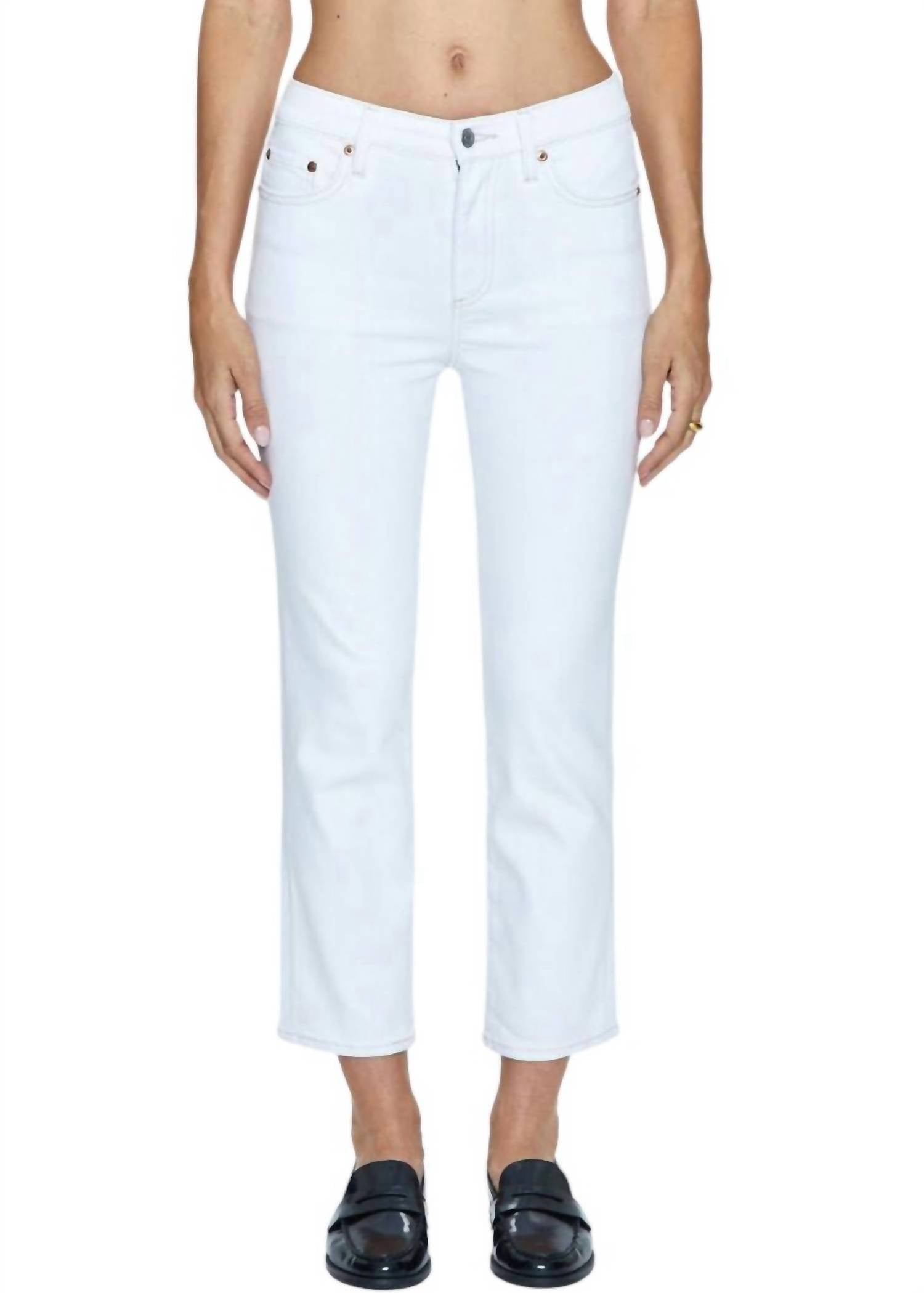 O jeans curto perfeito para as estações de transição. Eleve sua coleção de jeans com a Calça Jeans Crop Monroe High Rise Feminina Pistola, na elegante cor Le Blanc. Confeccionada em 100% algodão, esta peça apresenta corte reto e cintura alta para um caimento perfeito. Equipada com bolsos práticos e um fecho de zíper clássico, ela combina funcionalidade e sofisticação na perfeição. Combine esta calça jeans estilosa com seus chinelos ou sandálias favoritos para um look fashion e despojado.