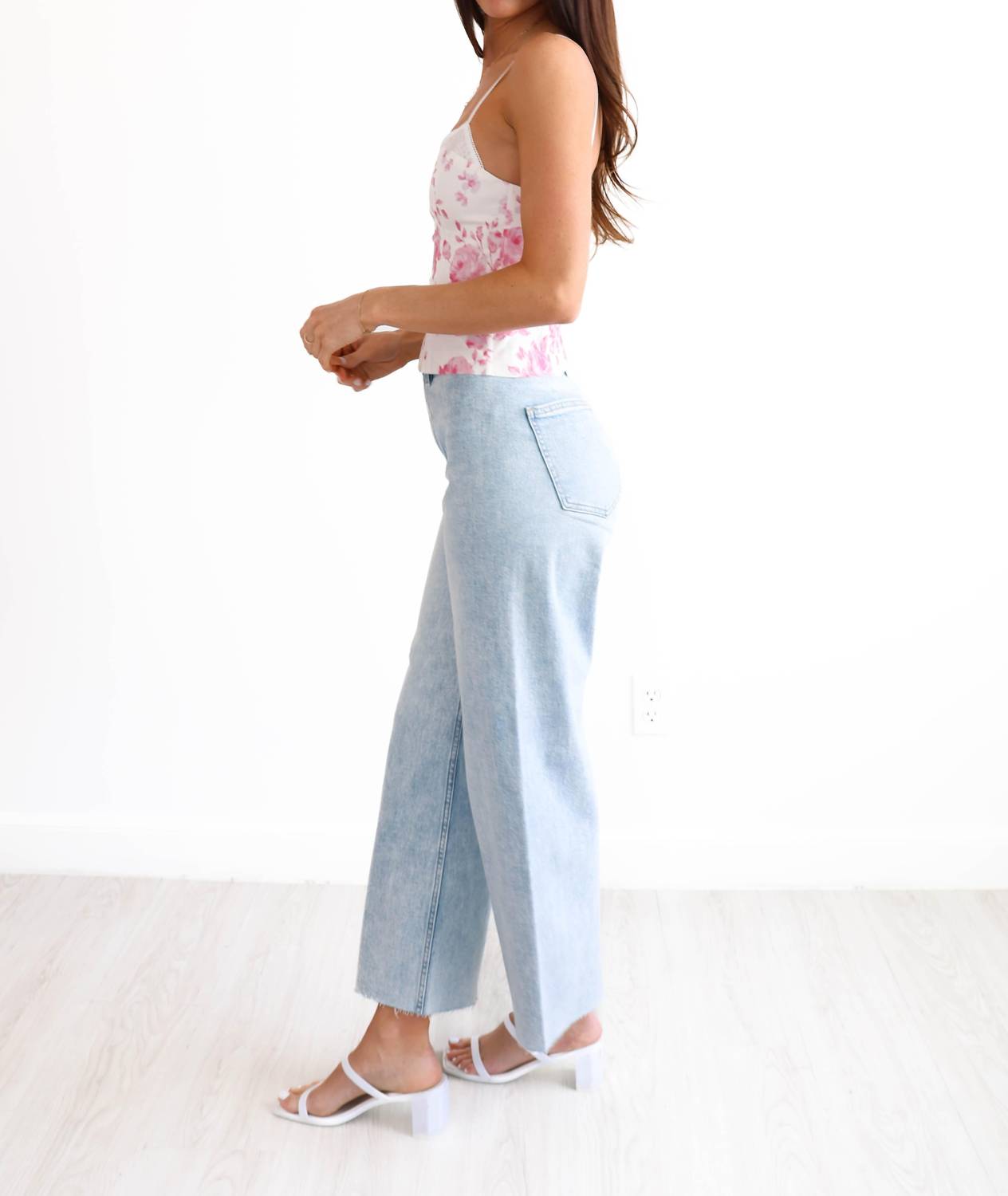 Apresentamos a Calça Jeans Feminina Penny Crop de Cintura Alta e Perna Larga da PISTOLA na exclusiva lavagem Collective azul-claro. Esta calça jeans apresenta cintura alta com caimento relaxado, além de cortes curtos e pernas largas, com bainhas cortadas em tesoura para um visual chique e despojado. Confeccionada em uma mistura confortável de 94% algodão, 5% poliéster e 1% elastano, ela inclui fecho de zíper e bolsos funcionais. Fácil manutenção com instruções de lavagem à máquina e secagem em tambor. A cintura mede 30 cm, a costura interna tem 68 cm e a abertura da perna tem 53 cm. A modelo Allie, com 1,70 m, veste tamanho 25.
