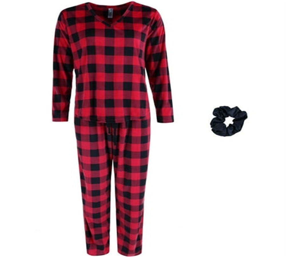 Conjunto de Pijama Feminino Buffalo Plaid PJ Couture - Tamanho M, Vermelho e Preto