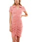 Um look despojado para o brunch e muito mais | O vestido justo em malha canelada da Planet Gold com gola pontuda é facilmente ajustável com laços tipo túnel na frente e franzidos estilosos. | Comprimento aproximado de 34, do centro do pescoço até a bainha. O comprimento é baseado no tamanho M e varia 1/2 entre os tamanhos | Forma pequena; se estiver entre tamanhos | peça um tamanho acima | Justo; Ajustado no peito | Cintura