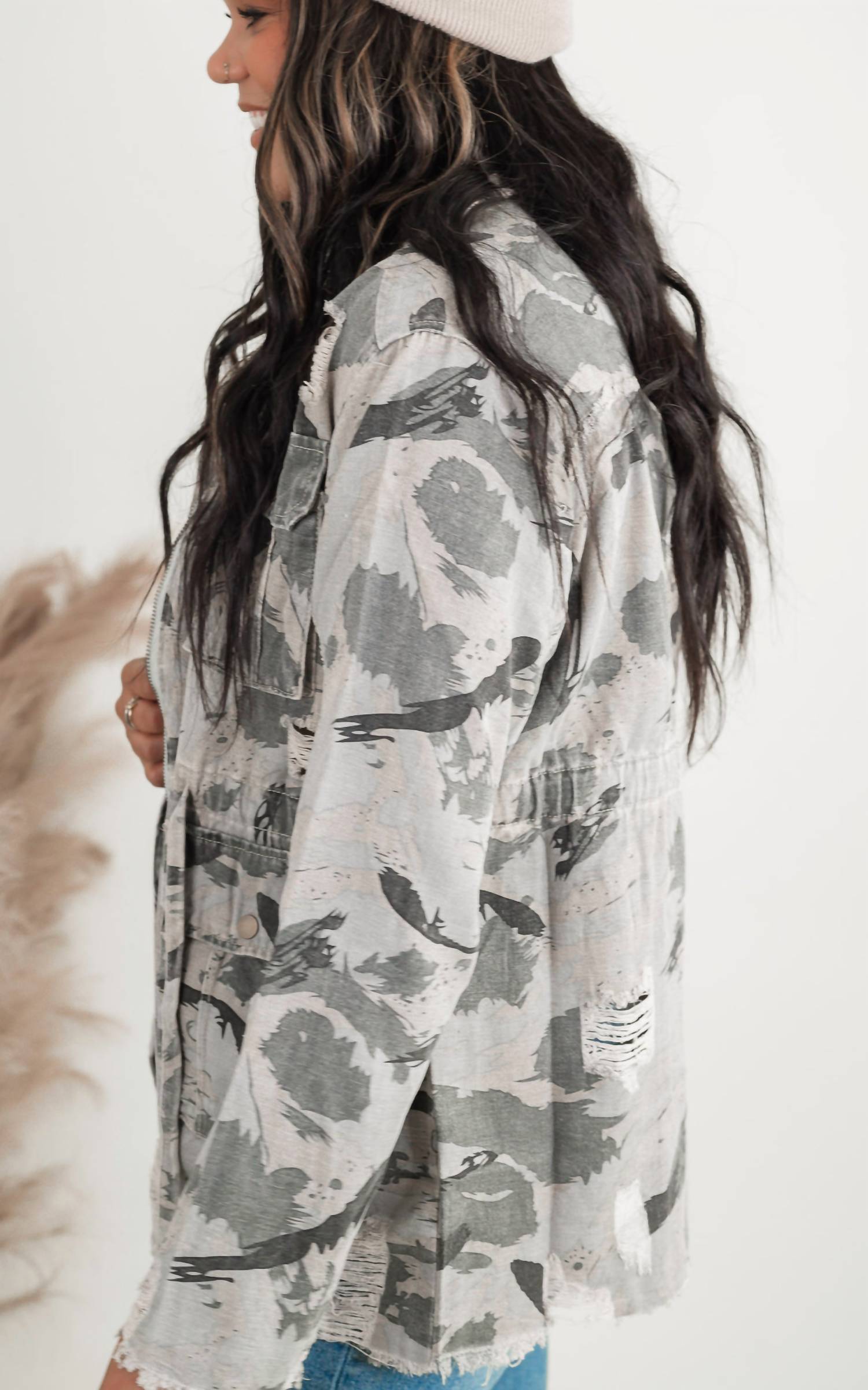 Clássico, descolado e combina com quase qualquer estilo de roupa. Adote o estilo atemporal da Jaqueta Camuflada de Sarja da POL com uma estampa camuflada vintage chamativa. Esta jaqueta feminina é confeccionada em 100% algodão, garantindo conforto com seu caimento solto e mangas longas. Com bolsos práticos e um prático fecho de zíper, esta peça é funcional e estilosa. Lave-a à mão com água fria para manter sua qualidade.