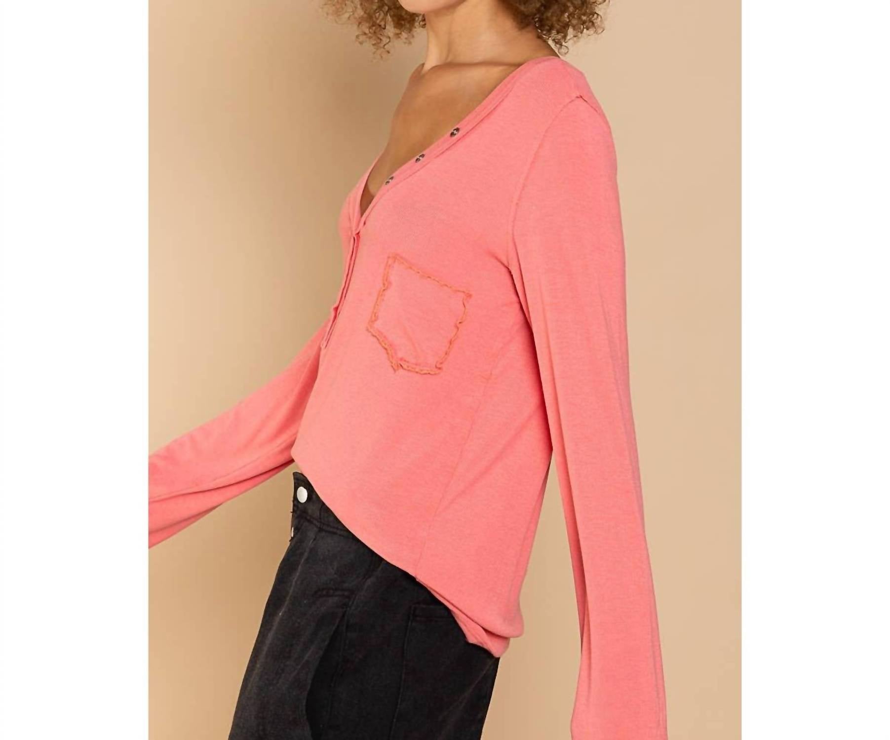A camiseta de manga comprida perfeita que combina com quase tudo. Esta blusa feminina apresenta mangas compridas e charmosos detalhes de botões no decote, realçados por um corte oversized e um bolso no peito com debrum merrow. Confeccionada em tecido canelado, sua composição inclui 94% rayon e 6% elastano, proporcionando conforto e elasticidade. Com 66 cm de comprimento, este design sólido apresenta detalhes de costura para maior estilo, completo com fecho de botão. Medida do busto: 46 cm.