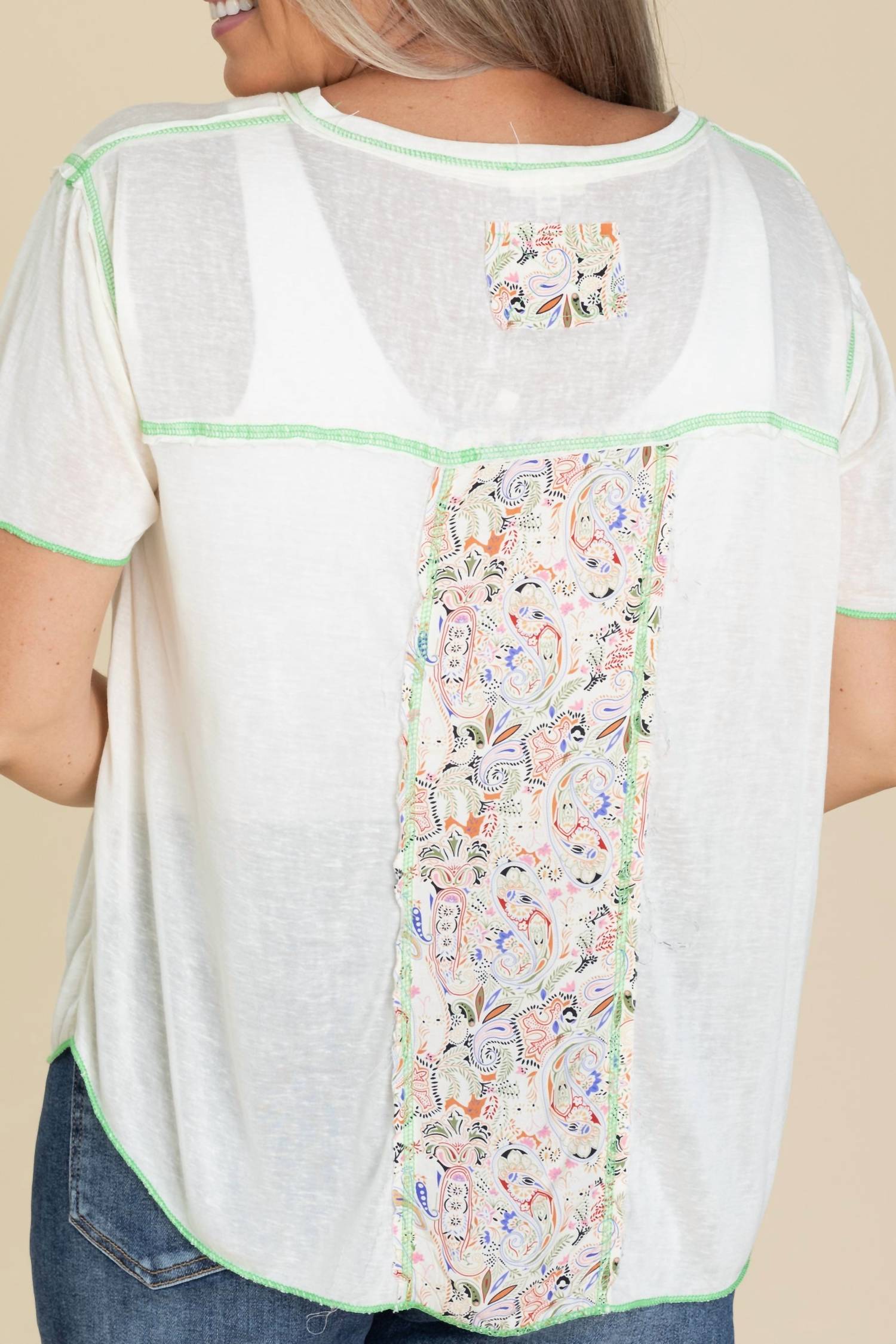 Descubra a blusa com decote em V e estampa mista contrastante da POL, uma peça essencial para o seu guarda-roupa de primavera. Esta blusa creme suave possui mangas curtas bufantes e um bolso charmoso com estampa floral. Confeccionada em mistura de algodão (70% algodão, 30% poliéster) com contraste em 100% rayon, ela possui um design pull-on para facilitar o uso. Cuidados: Lavar à máquina com água fria, secar na horizontal e passar a ferro em temperatura fria, se necessário. Disponível nos tamanhos P (ombro 48 cm, busto 56 cm, comprimento 63 cm, manga 19 cm), M (ombro 48 cm, busto 58 cm, comprimento 63 cm, manga 20 cm) e G (ombro 49 cm, busto 60 cm, comprimento 66 cm, manga 23 cm).