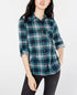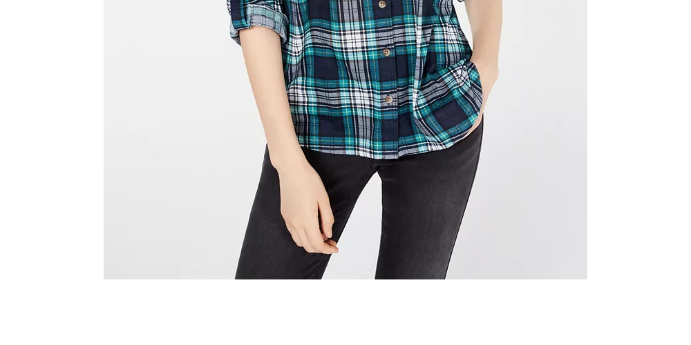 Camisa xadrez com aba dobrada Polly & Esther Junior, verde/preta, tamanho extragrande
