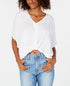 Polly & Esther Blusa casual feminina com nó frontal e manga dolman, branca, tamanho XS