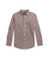 Camisa Polo Ralph Lauren para meninos, xadrez de algodão, manga comprida, com botões, vermelha, tamanho 14/16