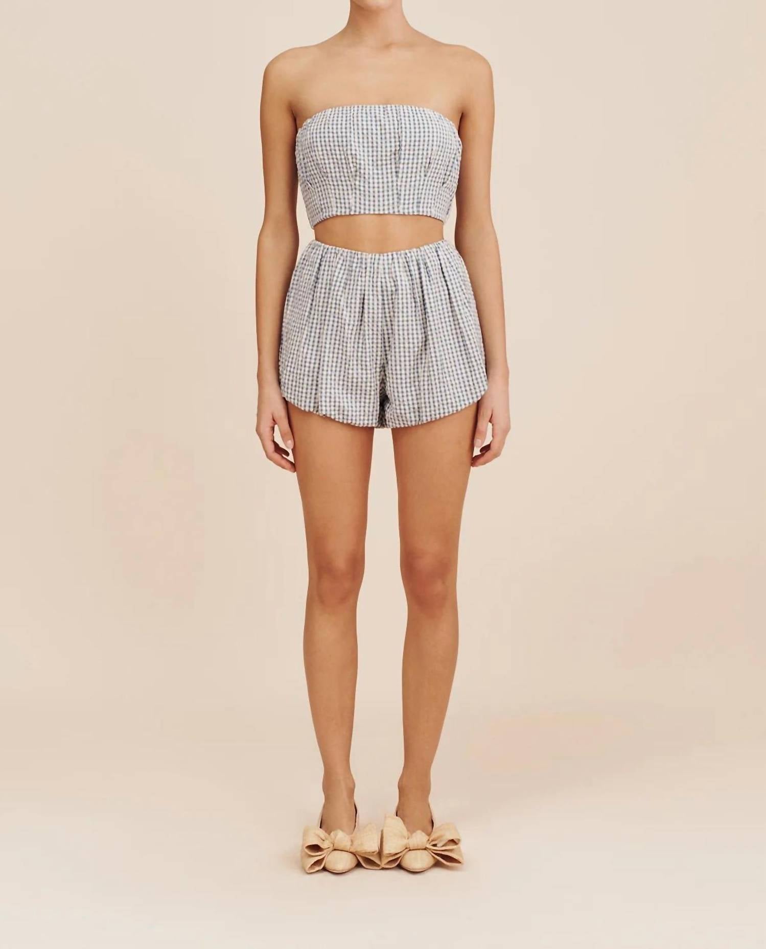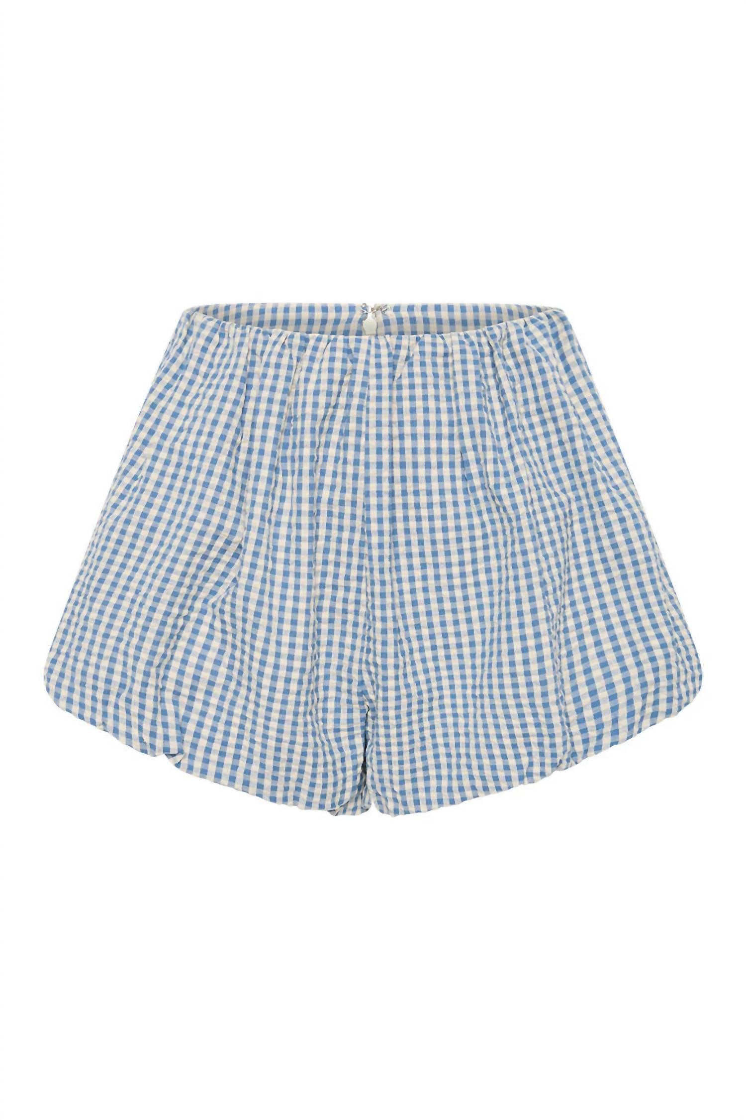 Com um ajuste perfeito, nós amamos esses shorts de cintura alta e você também vai adorar. Incremente seu guarda-roupa de verão com o short Aurelia de cintura alta da POSSE, com estampa xadrez exclusiva em azul e creme. Confeccionado em 100% algodão, este shorts oferece um estilo bloomer de cintura alta com cós franzido e bainha com punhos para um visual elegante e elegante. Possui fecho de zíper central nas costas para facilitar o uso. Cuidados: Lavar à máquina e secar no varal para manter a qualidade.