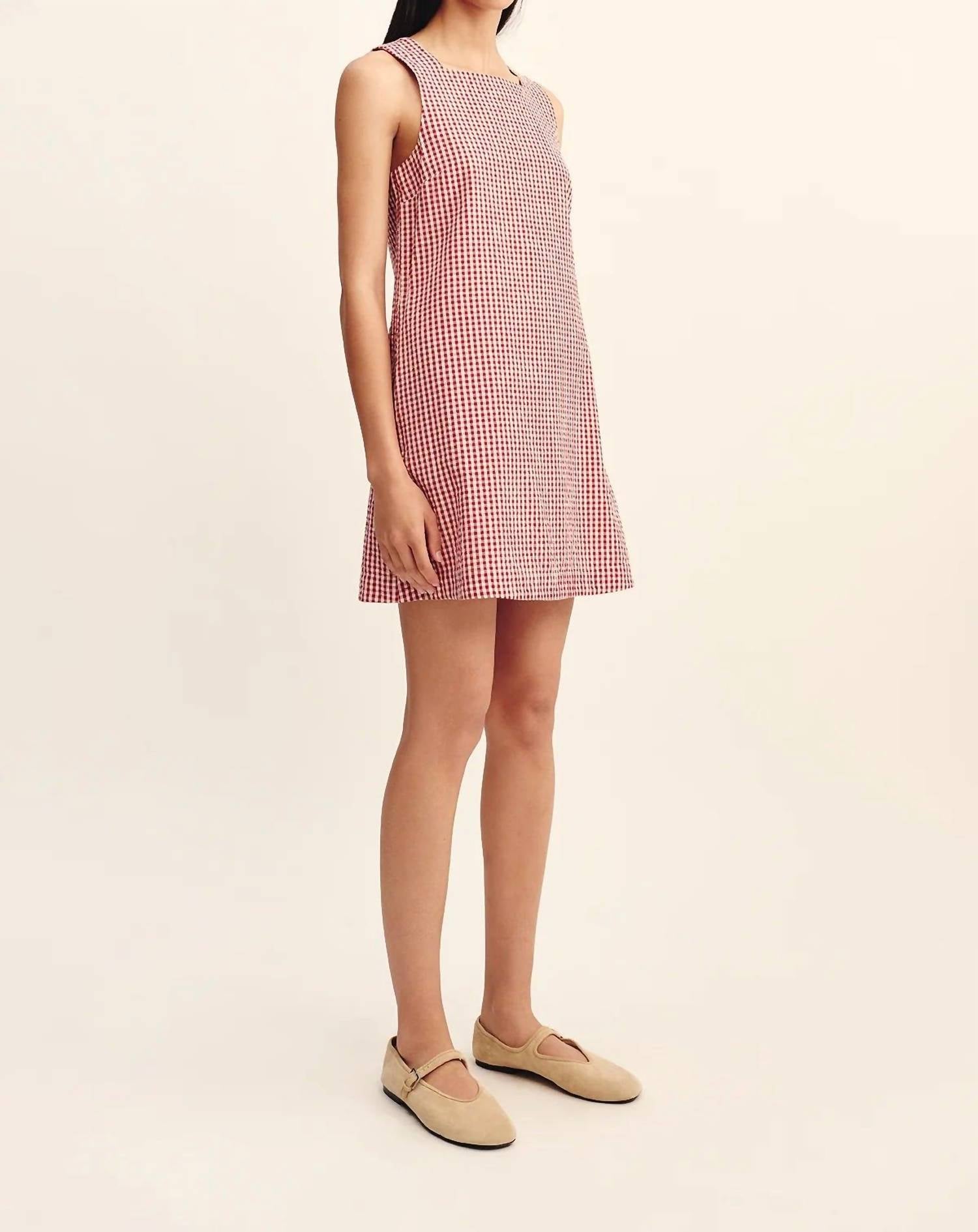 O minivestido perfeito para os meses mais quentes. Apresentamos o Vestido Curto Emma Shift da POSSE, uma escolha deslumbrante em um xadrez vermelho e creme atemporal. Este vestido sem mangas é confeccionado em 100% algodão e apresenta um decote quadrado alto com uma silhueta elegante, proporcionando um caimento relaxado e comprimento mini. Inclui bolsos laterais discretos e um zíper invisível no centro das costas para um look sem costuras. Projetado para facilitar a manutenção, este vestido pode ser lavado à máquina e é produzido em uma fábrica com certificação WRAP, garantindo uma produção ética. A modelo Sarah está vestindo tamanho XS (Altura: 175 cm, Busto: 79 cm, Cintura: 59 cm, Quadril: 89 cm).