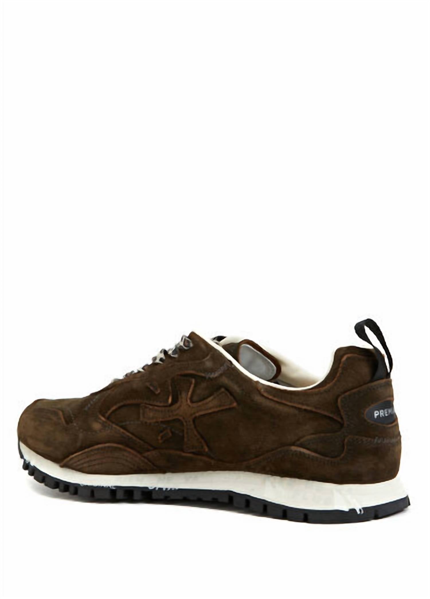 Quando moda e funcionalidade se unem perfeitamente. Apresentamos o Tênis Runsead 7062 da PREMIATA, uma mistura deslumbrante de estilo retrô e design contemporâneo. Confeccionado em 100% couro de bezerro, este tênis marrom ostenta um clássico bico redondo e fechamento frontal por cadarço. Apresenta solado de borracha de 2 cm, puxador no calcanhar e contraforte com a marca para um visual sofisticado. Perfeito para mulheres que buscam um toque de elegância, este tênis combina perfeitamente conforto com um visual moderno.