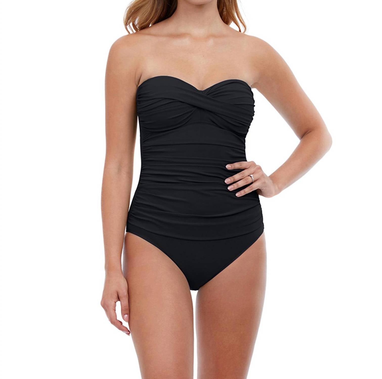 Um maiô tão chique que você pode usá-lo como body com seu jeans favorito. Este maiô possui um sutiã com bojo macio, decote tipo bandeau com alças removíveis e ajustáveis, controle de barriga integrado. Malha 72% poliamida, 28% elastano.