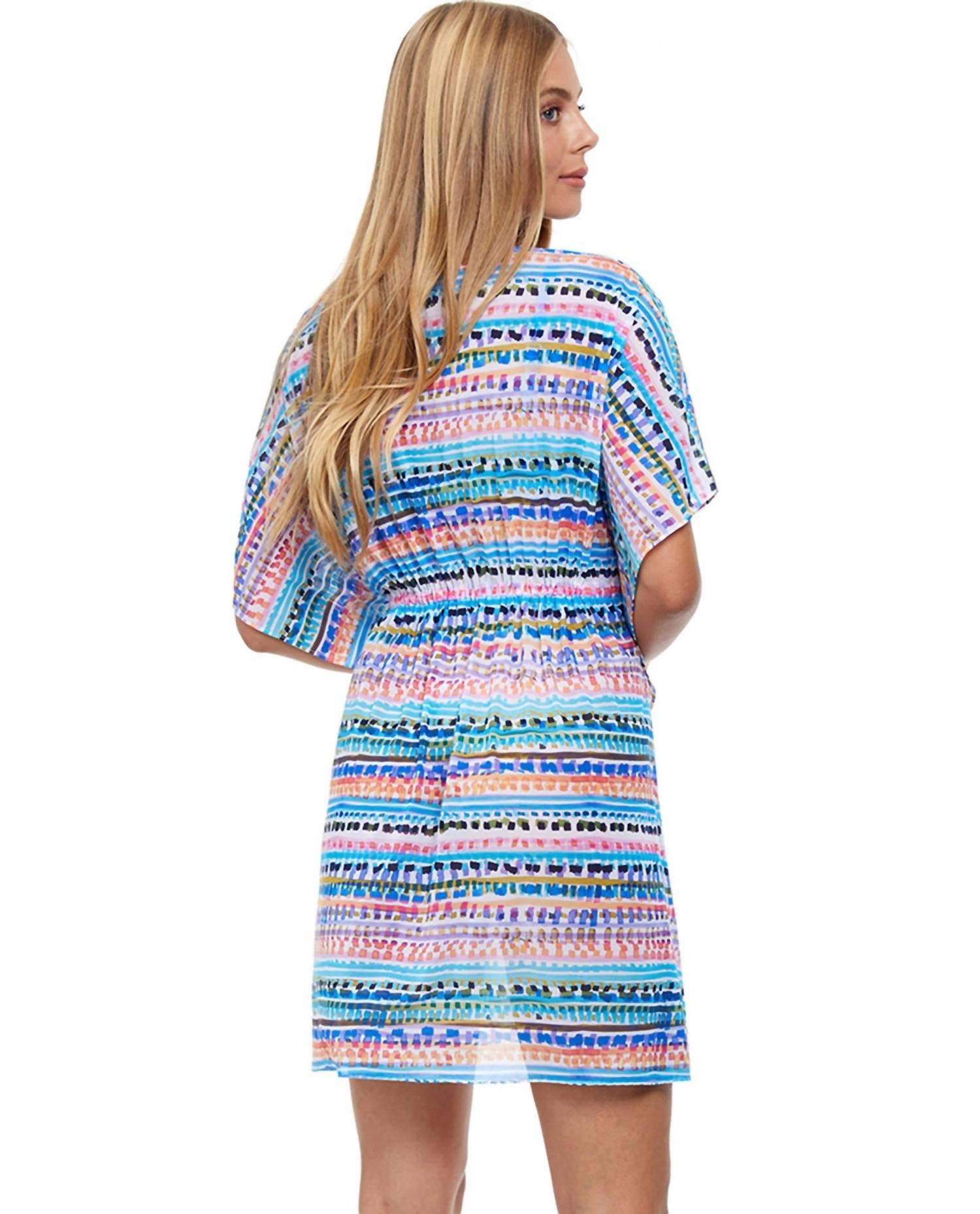 Você vai querer levar isso para as suas próximas férias! Esta túnica tem decote profundo em V. Mangas curtas. Cintura com cordão. Fendas laterais. Semitransparente. Importado. 90% poliamida, 10% elastano. Lavar à mão.