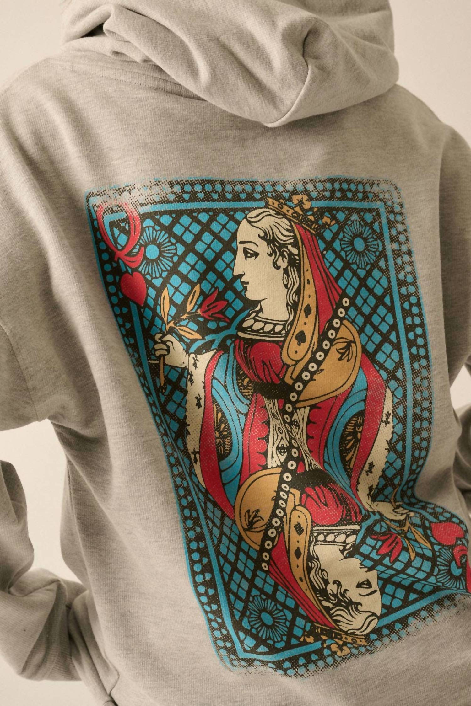 Liberte seu estilo com o Moletom com Capuz Queen Of Hearts Graphic da PROMESA, uma peça marcante na cor Cinza Mesclado. Com mangas compridas e gola com capuz, este moletom oversized ostenta um design gráfico de inspiração vintage com logotipo frontal no peito e estampa de carta de baralho nas costas. Confeccionado em 100% algodão, garante conforto e respirabilidade. Fechamento por amarração. Lavável à máquina.
