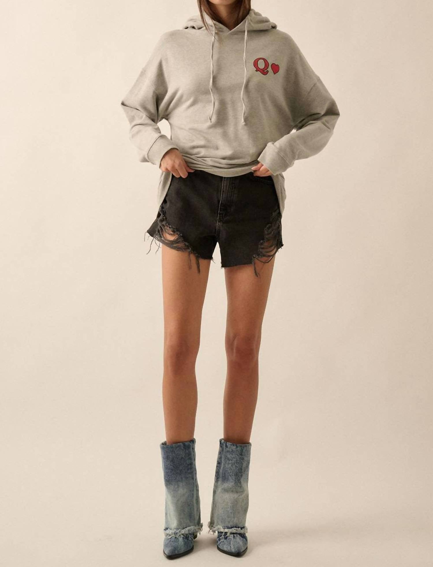 Temperaturas mais frias pedem camadas de roupa e nós amamos este moletom adorável por todos os motivos óbvios. Liberte seu estilo com o Moletom com Capuz Queen Of Hearts Graphic da PROMESA, uma peça marcante na cor Cinza Mesclado. Com mangas compridas e gola com capuz, este moletom oversized ostenta um design gráfico de inspiração vintage com logotipo frontal no peito e estampa de carta de baralho nas costas. Confeccionado em 100% algodão, garante conforto e respirabilidade. Fechamento por amarração. Lavável à máquina.