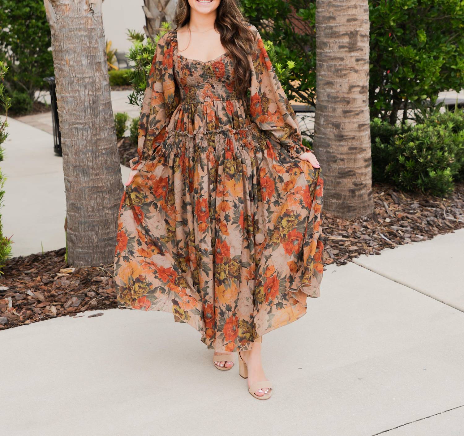 Quem não ama um bom vestido longo? Este você vai usar em todas as estações. Apresentamos o Victoria Floral Maxi da PROMESA, uma peça cativante em laranja vibrante, criada para elegância e graça. O vestido apresenta mangas longas bufantes com punhos franzidos e um charmoso decote coração adornado com babados, complementado por um detalhe de saia franzida para maior textura. A estampa floral irradia feminilidade, enquanto a cintura império garante um caimento elegante. Fechamento: Puxe para vestir. Este vestido longo é perfeito para causar impacto sem esforço. Para referência, Kami tem 1,60 m e veste tamanho P.