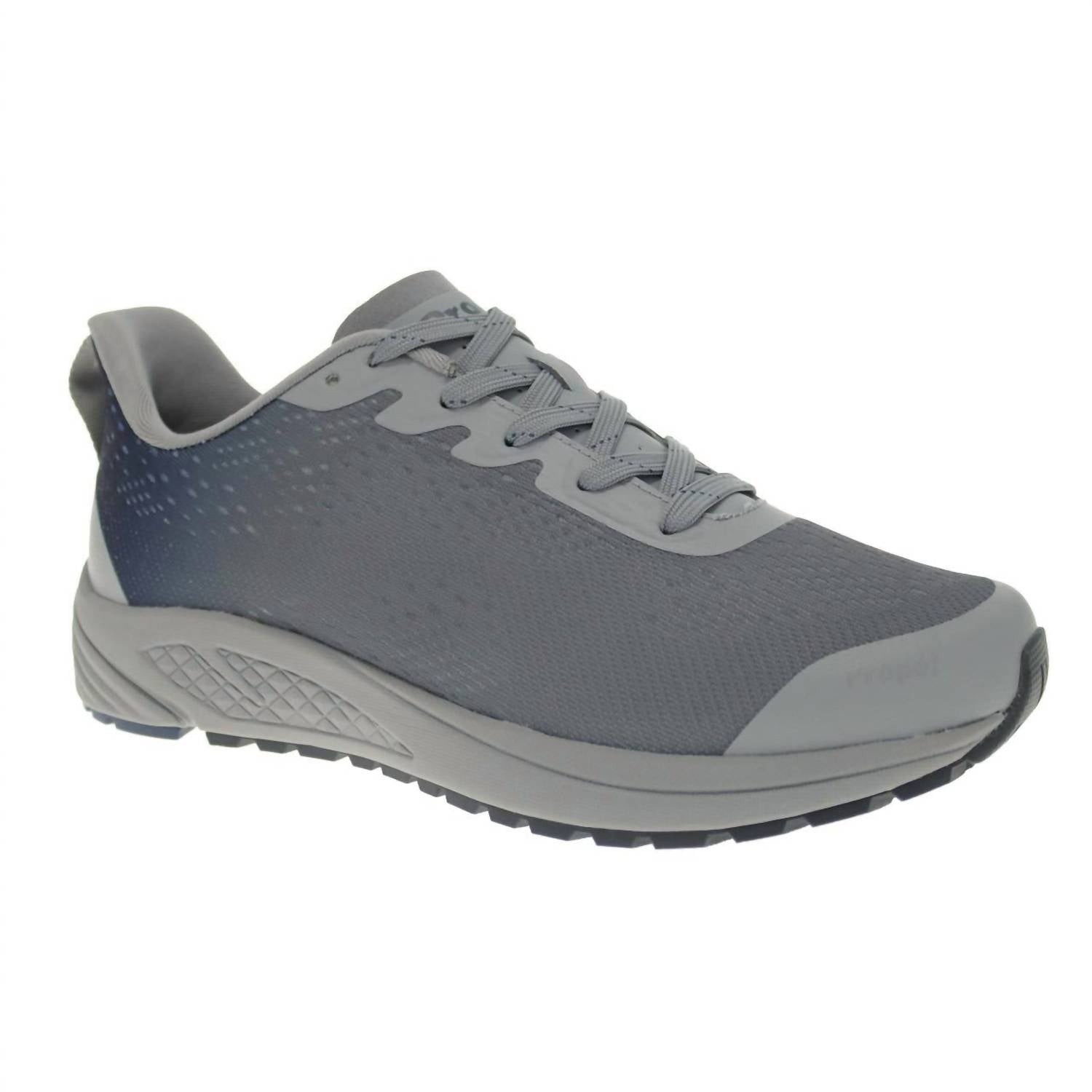 Introducing the Men's One Evolve Sneaker by PROPET, a flexible choice in Grey Navy for the fashion-forward traveler. This sneaker features removable double insoles with the Propét EV Insole System, allowing easy customization for extra volume or custom orthotics. Crafted with OrthoLite® insoles, these shoes ensure a cooler, drier interior without adding bulk. Designed with a round toe and flat heel for comfort, these sneakers are perfect for a Y2K-inspired spring getaway or a stylish 4th of July celebration.