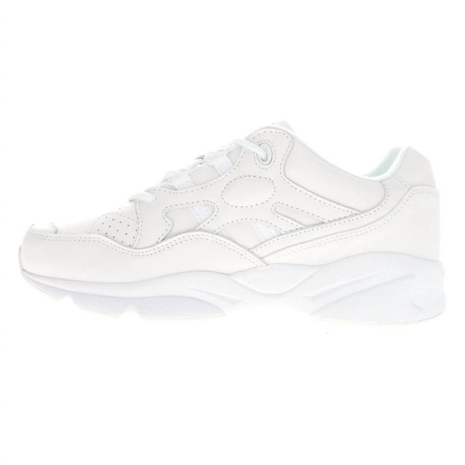 Get your daily steps in with these adorable sneakers. Experience unparalleled comfort with the PROPET Women's Stana White Diabetic Friendly Sneakers, crafted for those long days on your feet. These sneakers feature a durable leather upper with a roomy round toe for enhanced comfort and orthotic compatibility. Designed with slip-resistant traction, these shoes provide the stability and safety you need for any travel occasion. Enjoy a flat heel for a natural stride, making them the perfect companion for your spring adventures.