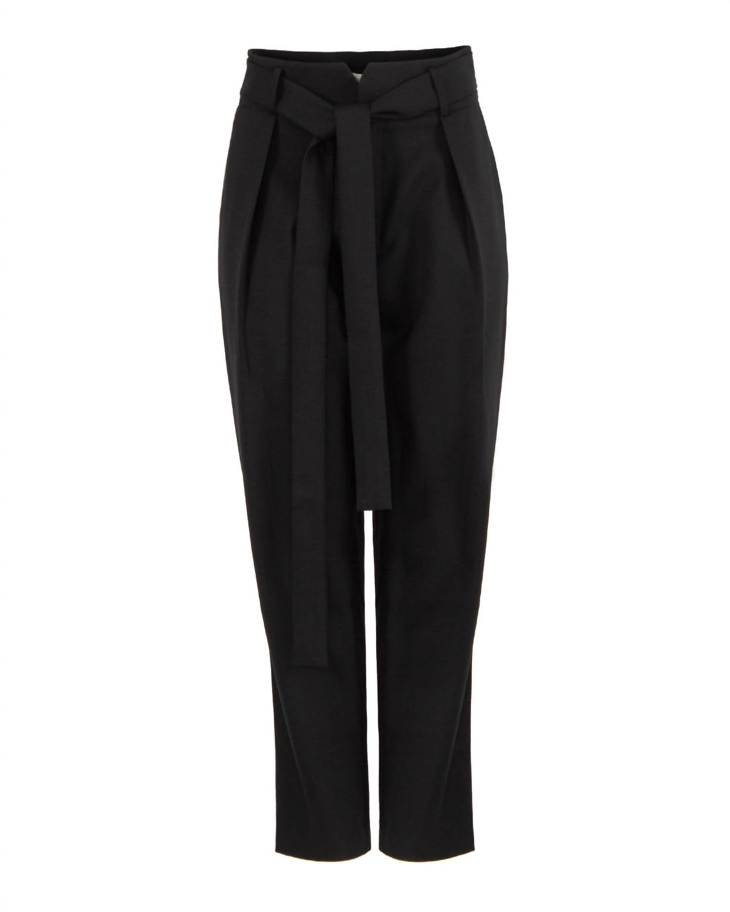 Elevate your evening event attire with the Belted Pleated Pants by Psophia, crafted in a classic black wool blend. These high-rise trousers feature a relaxed fit with straight legs for sophistication and comfort, complete with a zip closure for seamless style. Composition: 50% Wool, 24% Polyester, 20% Viscose, 6% Elastane. Proudly made in China. Pockets offer practicality without sacrificing elegance, perfect for workwear in a solid, timeless pattern.
