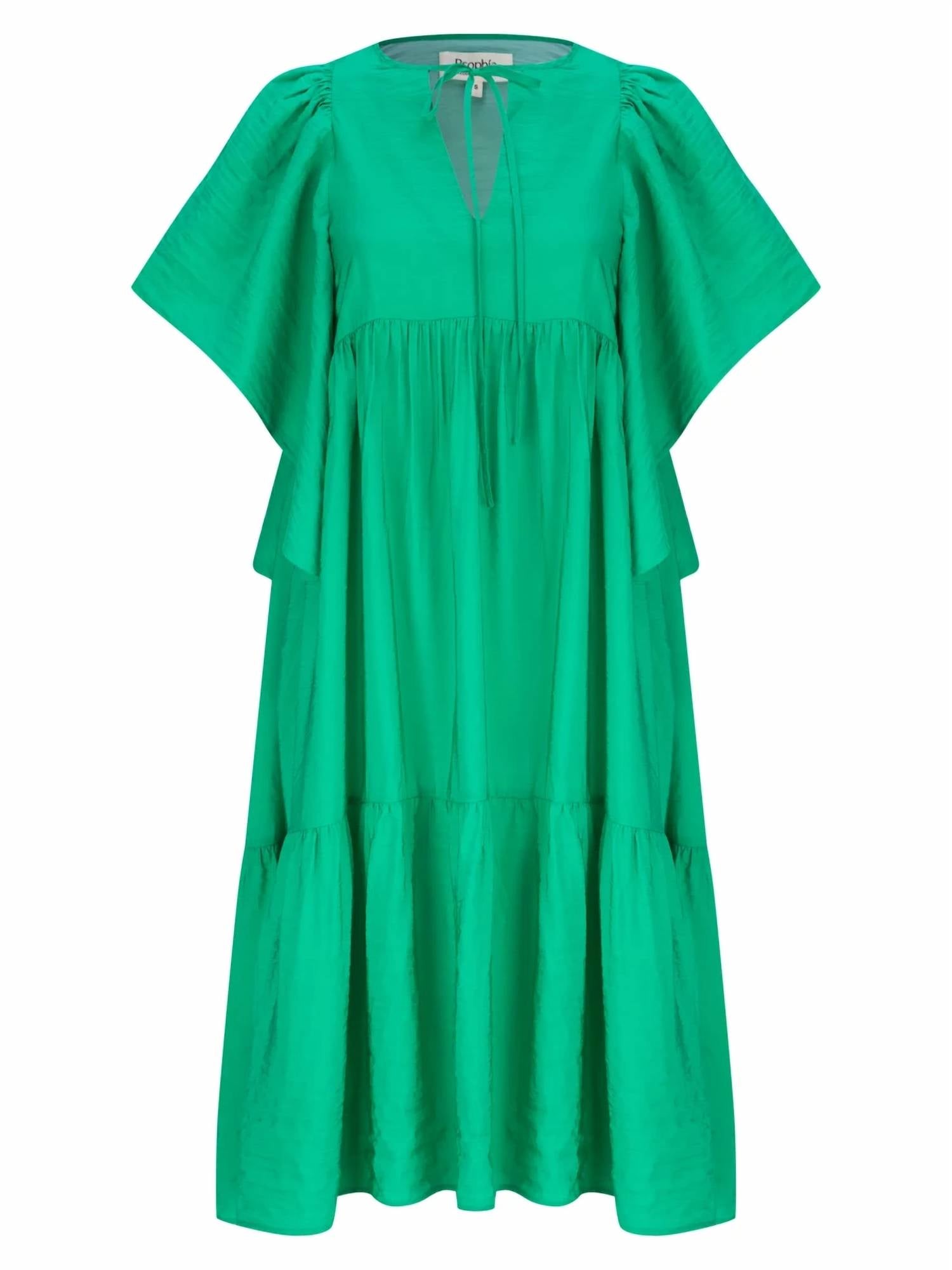 Basta adicionar slides ou mules e pronto. Este vestido midi verde vibrante apresenta decote em V com detalhes de gravata, mangas esvoaçantes, silhueta em camadas e tecido texturizado leve para um visual alegre e feminino. 86% rayon, 14% nylon.