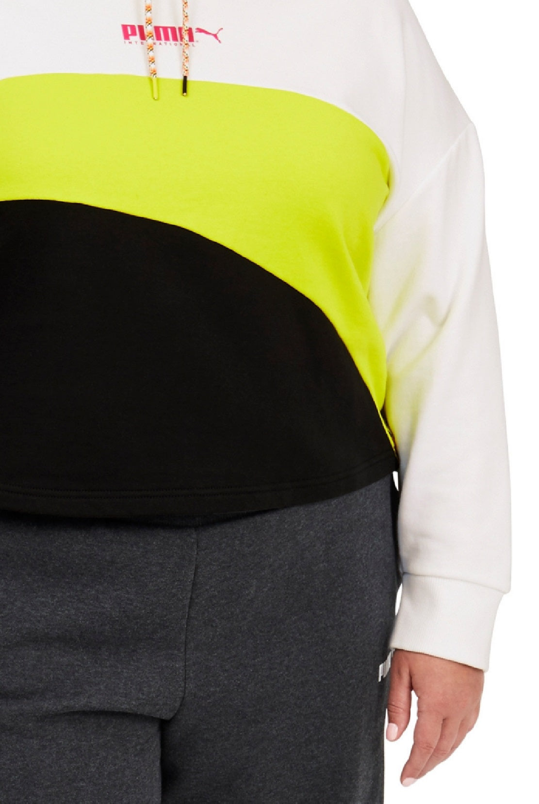 Uma mistura de painéis com blocos de cores traz contraste brilhante e estilo esportivo a este confortável moletom com capuz plus size de algodão da Puma. | Capuz com cordão | Logotipo Archive No. 1 na frente; painéis duplos com blocos de cores nas mangas; punhos e bainha canelados | Algodão; canelado; algodão/elastano | Lavável à máquina | Importado