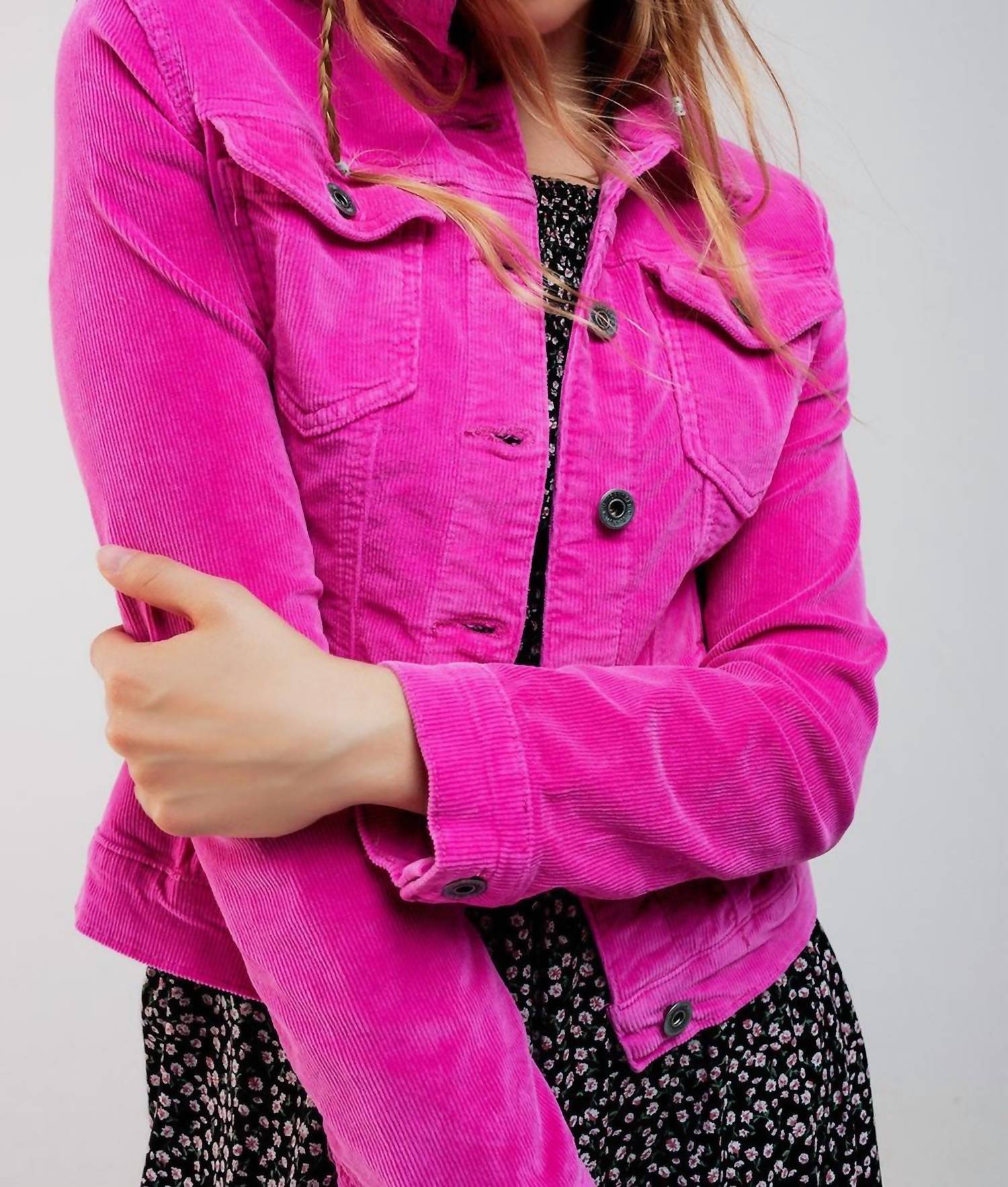 Uma jaqueta tão versátil que você pode usá-la com qualquer coisa. Eleve seu estilo com a fabulosa jaqueta de veludo cotelê da Q2 em fúcsia vibrante. Esta jaqueta casual feminina possui mangas longas e gola clássica, confeccionada em veludo cotelê de algodão macio e leve. A jaqueta inclui bolsos práticos e um fecho de botão seguro para funcionalidade e estilo. Ideal para sobreposições, esta peça com estampa lisa traz um toque de cor e sofisticação a qualquer look.