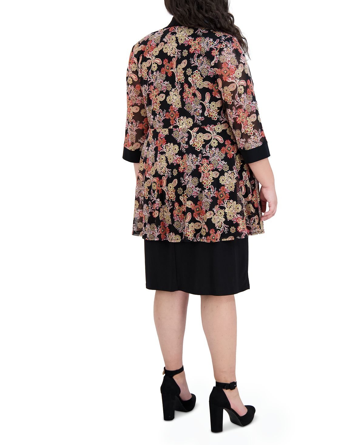 R & M Richards Jaqueta e vestido estampados femininos, 2 peças, preto, tamanho 16W