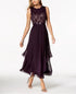 Vestido feminino pequeno de renda e chiffon com lantejoulas R & M Richards, roxo, tamanho 1
