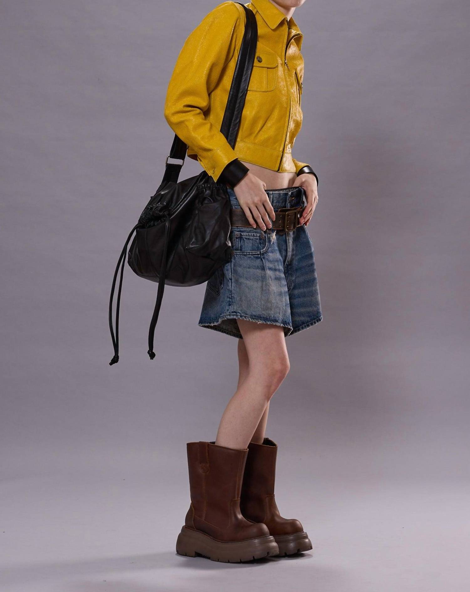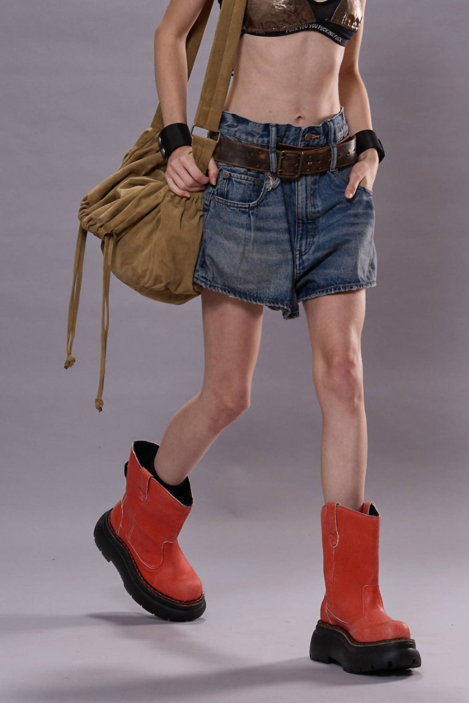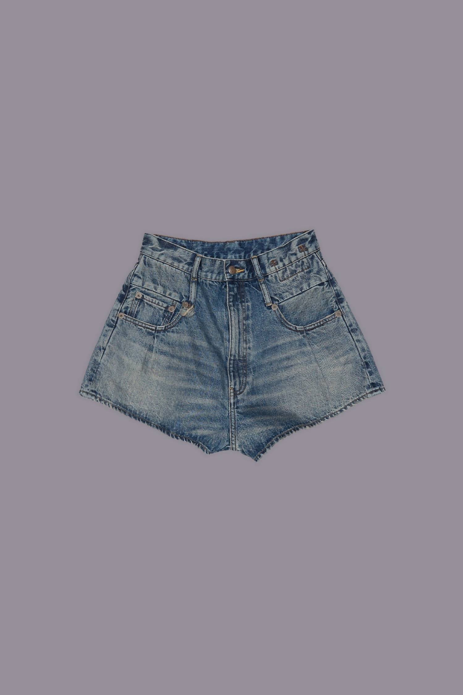 You can never have too many jean shorts and these will be your new favorites. Experience the edgy style of the R13 Double Loop Venti Short, designed with a relaxed baggy fit and a low drop crotch for a chic, laid-back look. Crafted from 100% cotton, this piece features dual belt loops for versatile styling and pleats below the pockets for added fullness. These jean shorts are meticulously constructed with mid-weight Japanese rigid indigo denim and finished with a medium indigo wash, offering a casual yet refined aesthetic. The shorts boast a button closure and are made in Italy, highlighting the brand's commitment to quality craftsmanship.