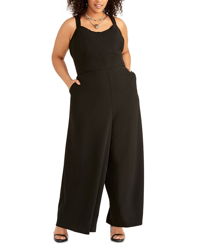 Faça uma pose séria com este macacão plus size da RACHEL Rachel Roy | projetado com uma silhueta ampla de pernas largas para maior cobertura. | Costura interna aprox.; 28. O comprimento é baseado no tamanho 14W e varia aprox. 1/2 entre os tamanhos | Decote redondo; fecho de zíper oculto nas costas | Bolsos na costura | Exterior; poliéster/elastano; forro; poliéster