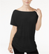 Camiseta feminina Rachel Roy com decote canoa franzido, preta, tamanho extragrande