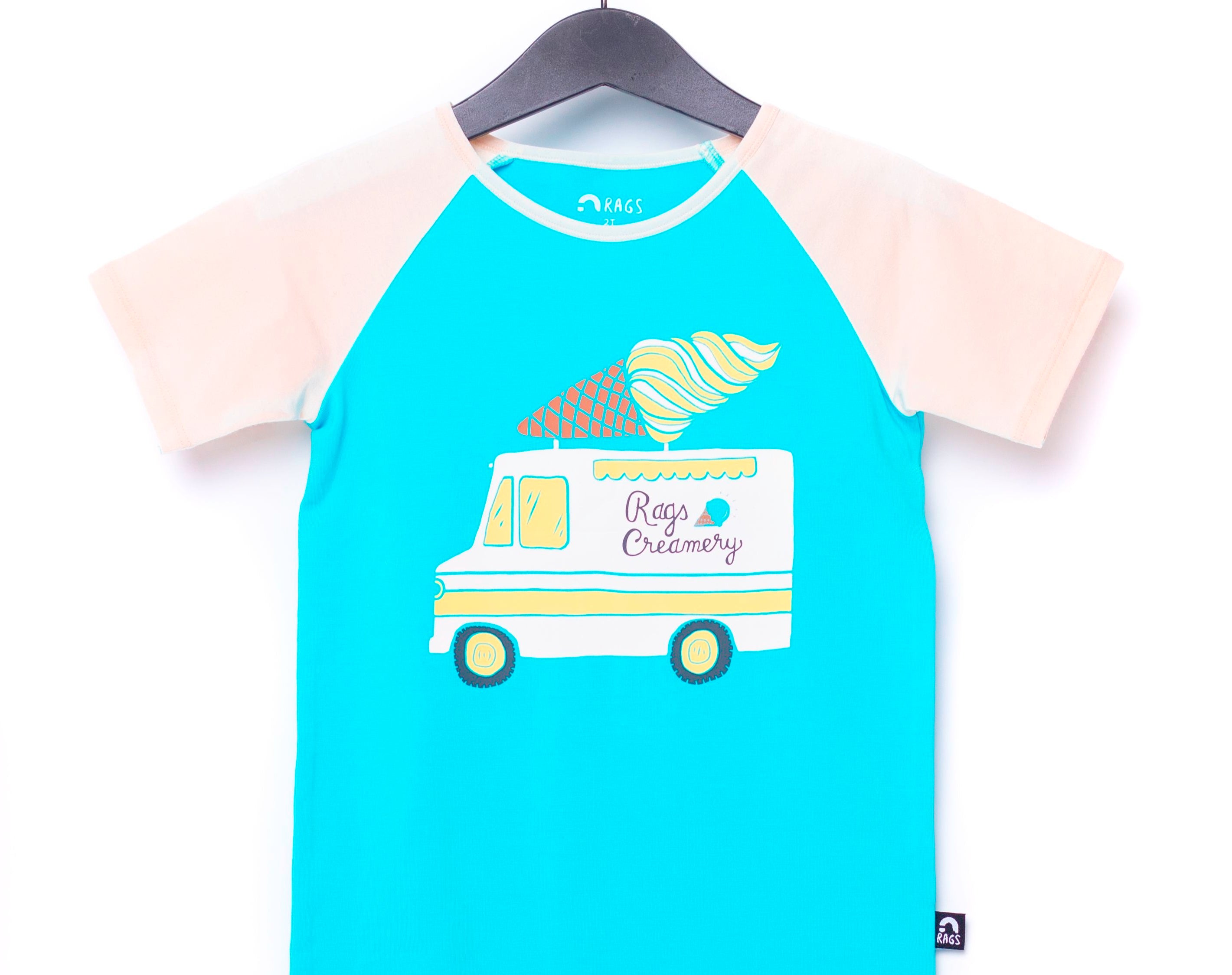 Macacão curto infantil RAGS Apparel manga raglan azul tamanho 2T