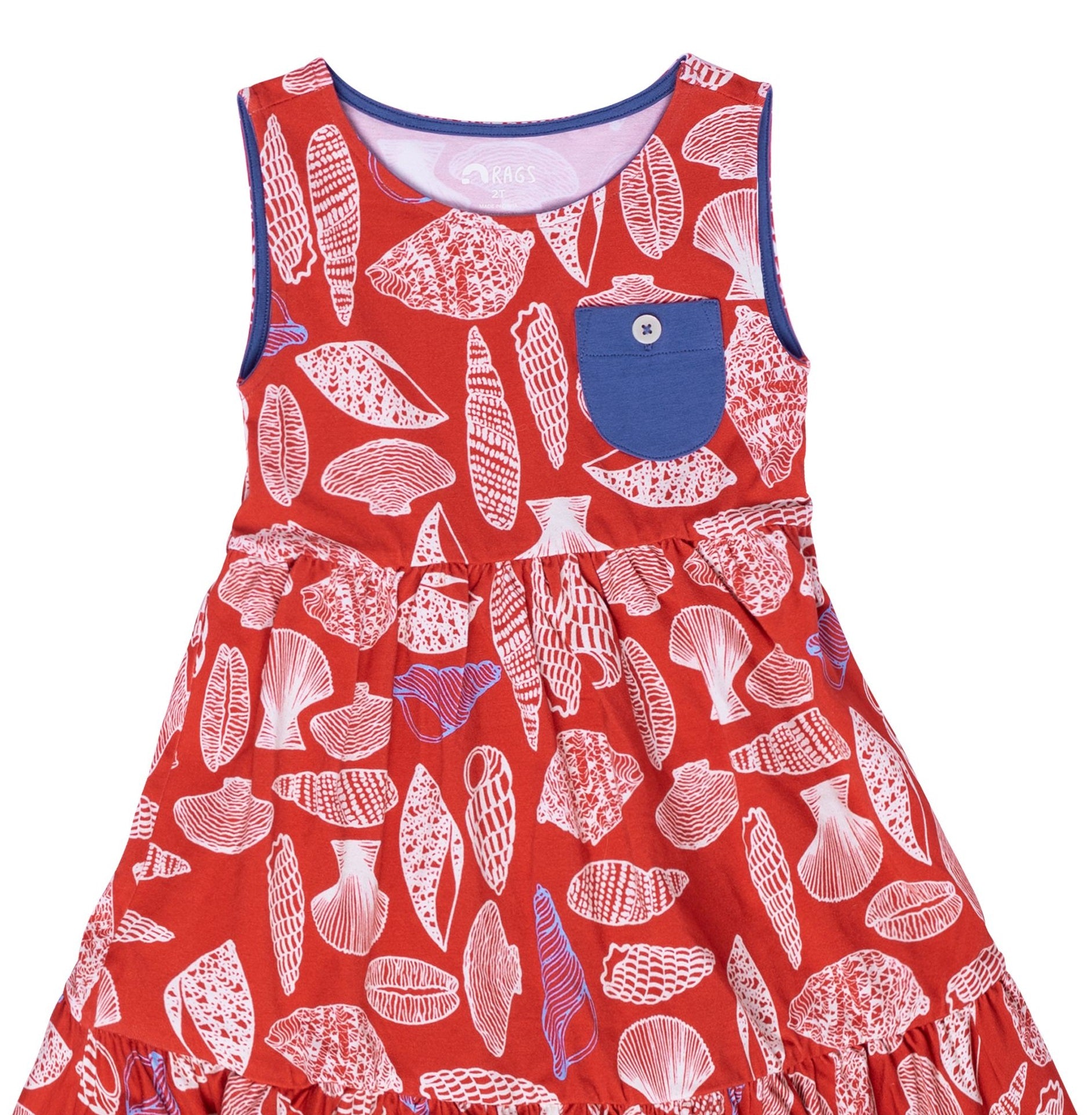 Vestido infantil RAGS Apparel com manga curta e bolso com botões, vermelho, tamanho 2T