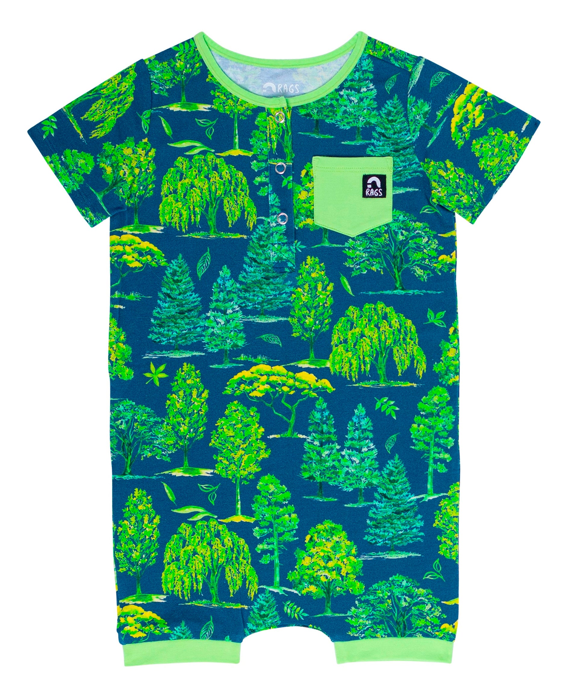 Macacão curto infantil RAGS Apparel com bolso Henley e manga curta, azul, tamanho 2T