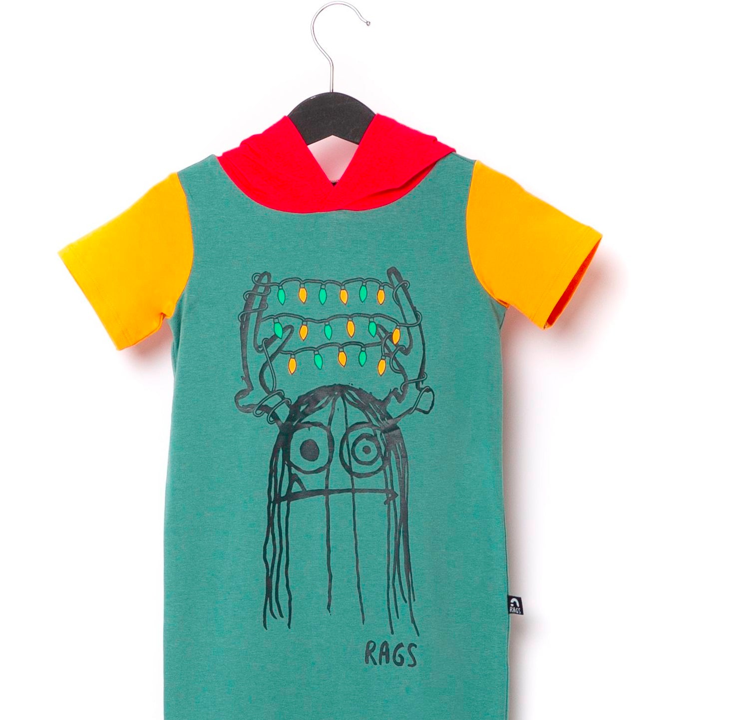 Macacão infantil de manga curta com capuz e tecido Rag da RAGS Apparel, verde, tamanho 2T