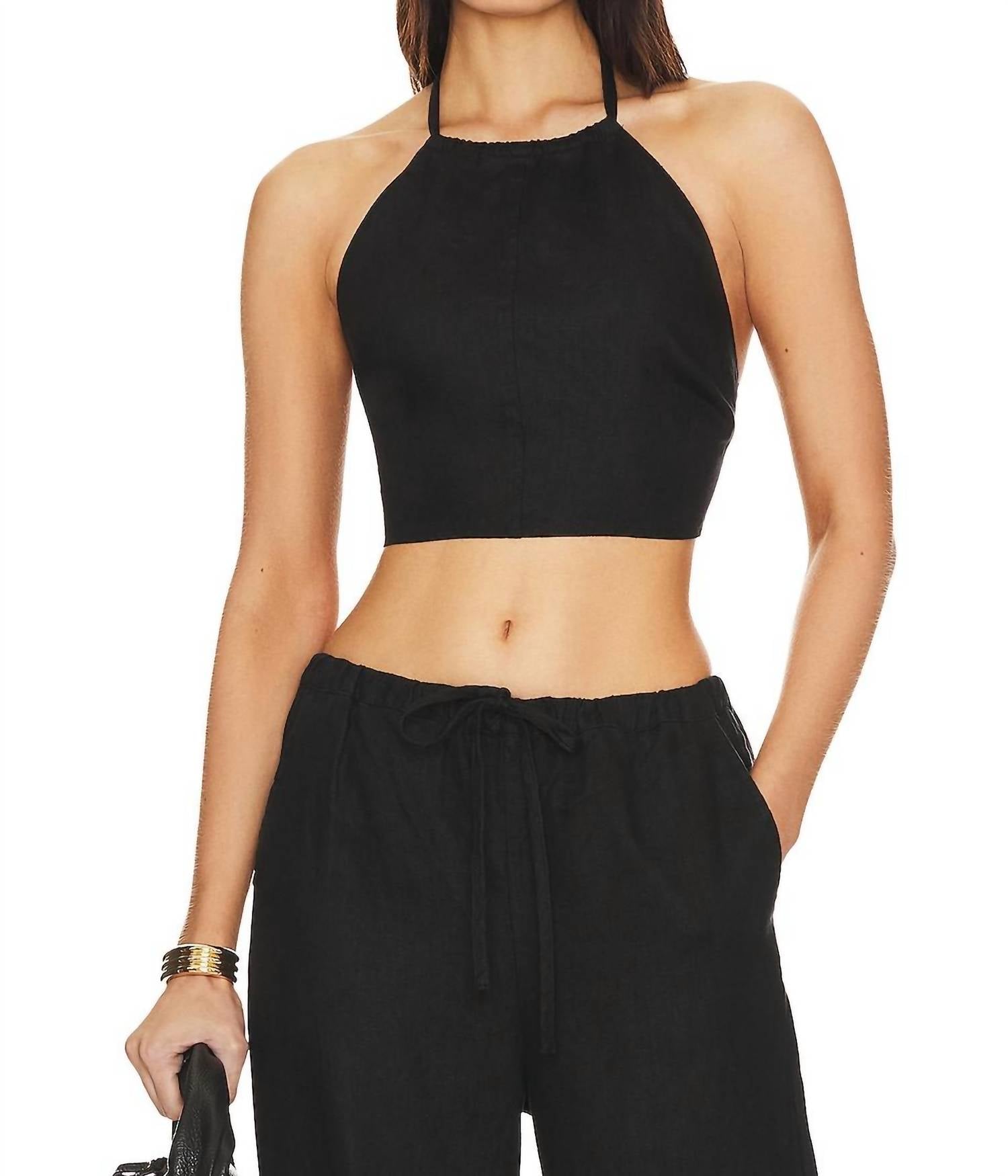 Combine este top cropped com sua calça jeans de cintura alta favorita ou saia longa. Decote halter e fecho duplo nas costas. Tecido de linho leve. 100% linho. Fabricado na China. Lavagem a seco. Recomenda-se pedir o tamanho real. Comprimento frontal: 31 cm (medido a partir do P). A modelo está vestindo tamanho P.
